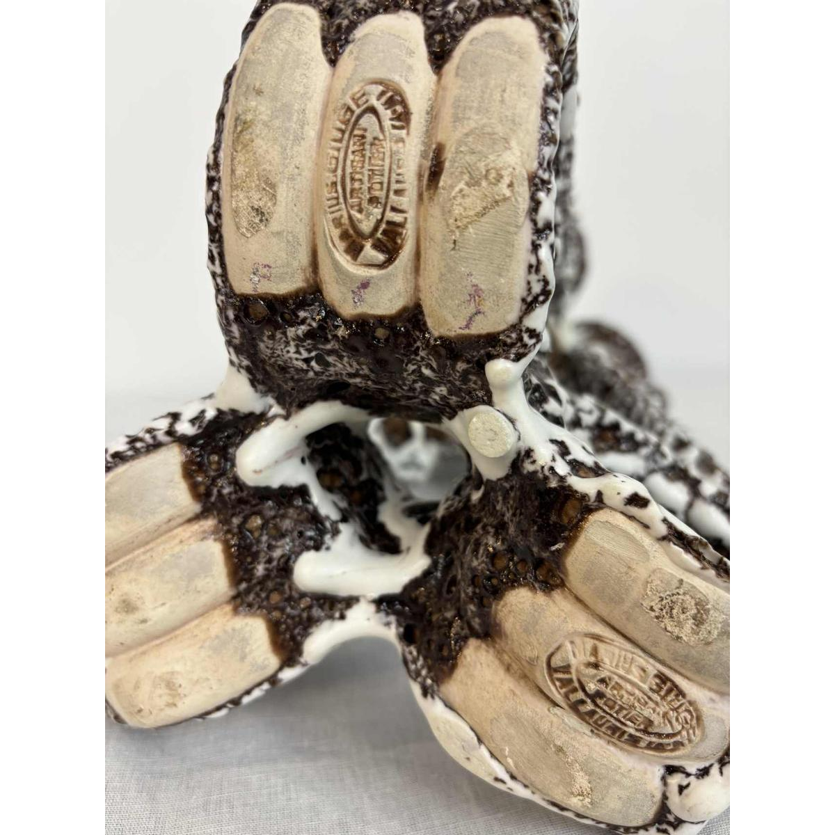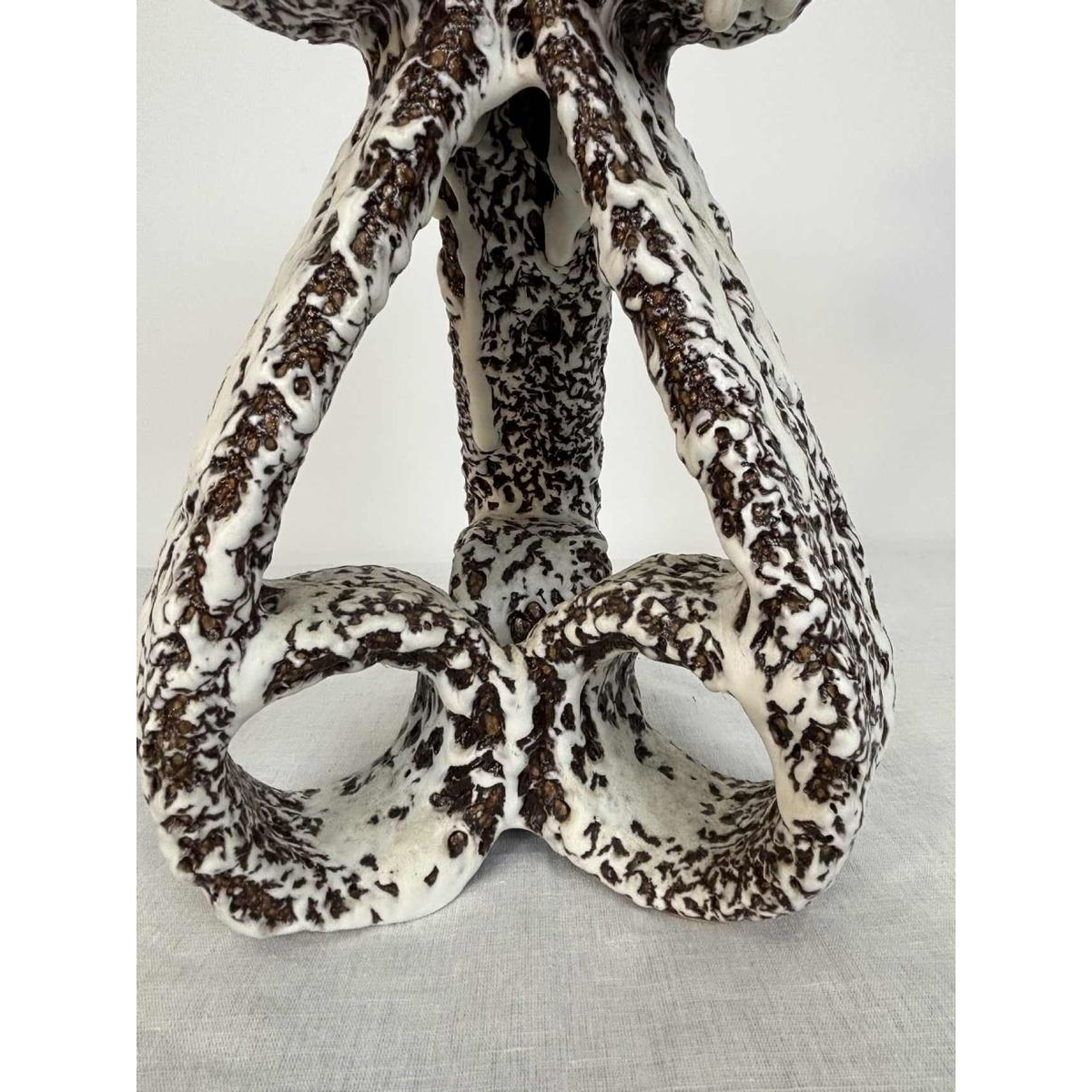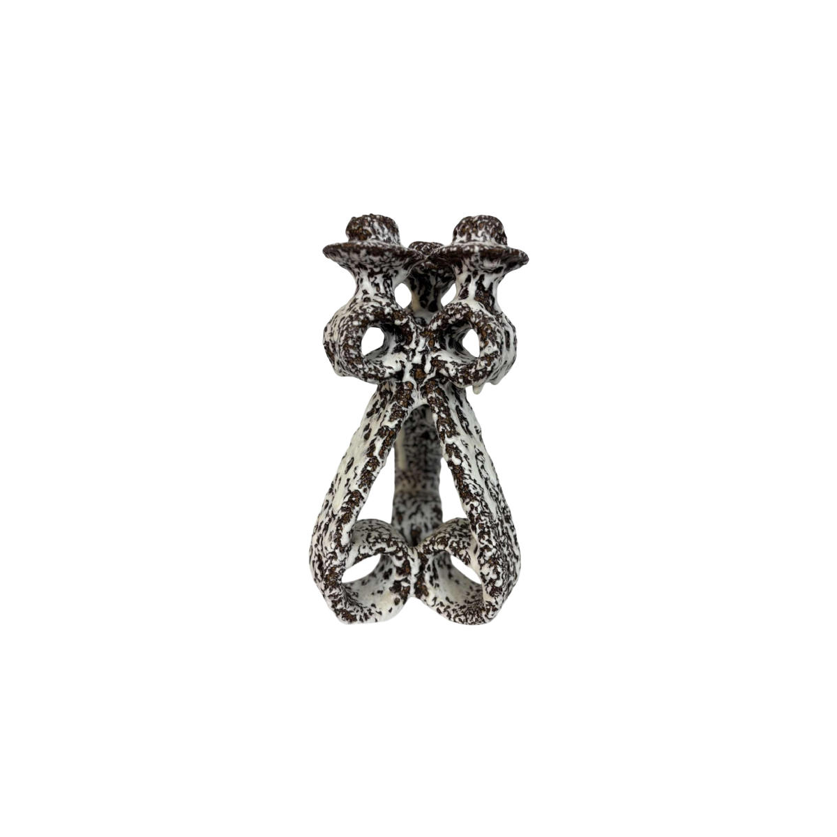 De organische, bijna barokke vormen van de armen herinneren zowel aan de Brutalistische kunst als aan de vrije geest van de naoorlogse mediterrane keramiek.