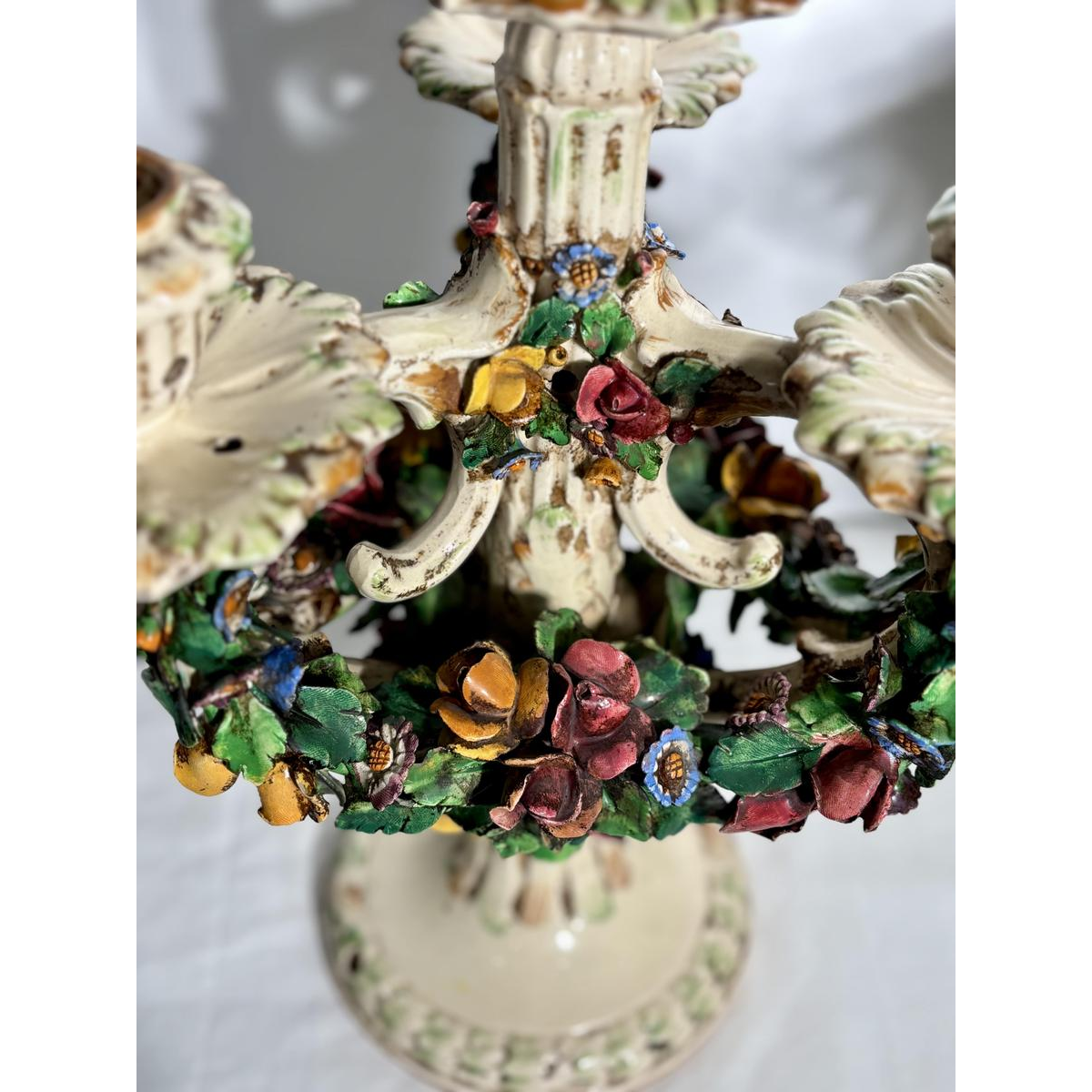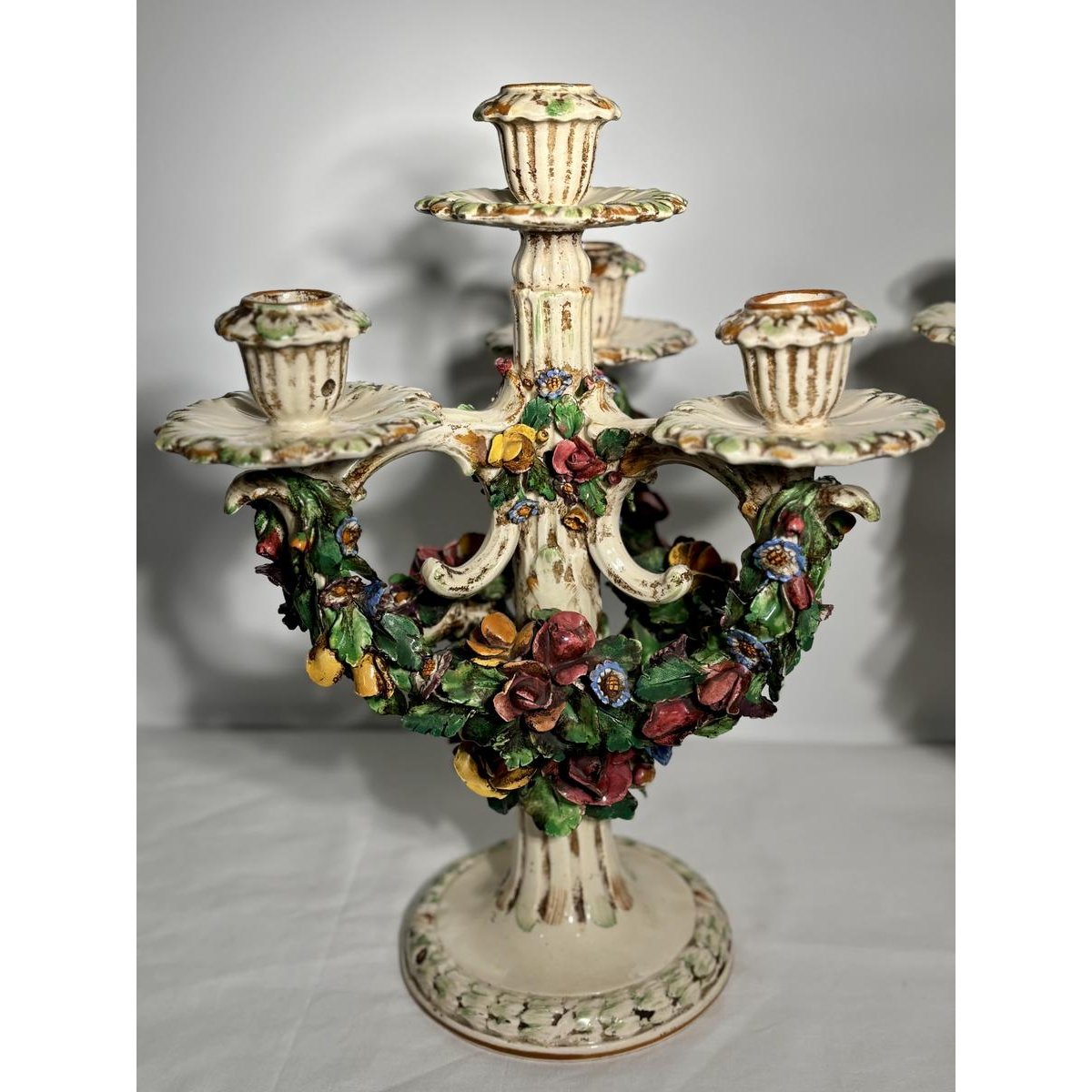 This form is only used to notify us of illegal content on product: Paar keramische 'fiori applicati' kandelaars uit Bassano, Italië - 1920/1940.