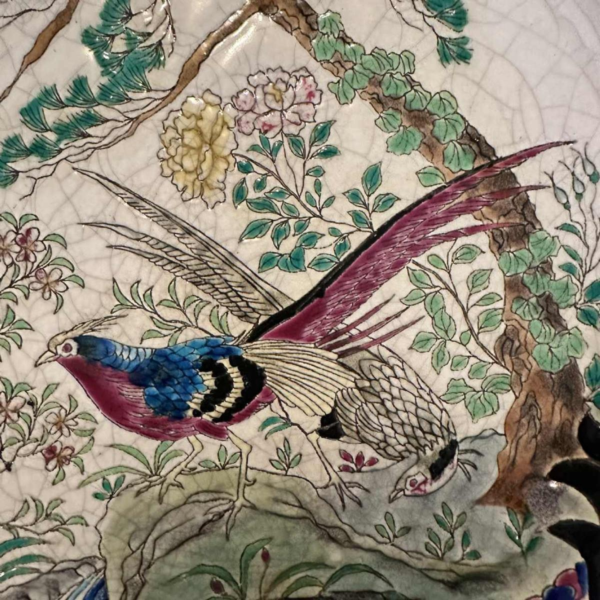 This form is only used to notify us of illegal content on product: Emaux de Longwy, schaal met voorstelling van een fazantenpaar in het wild, cloisonné email randen.