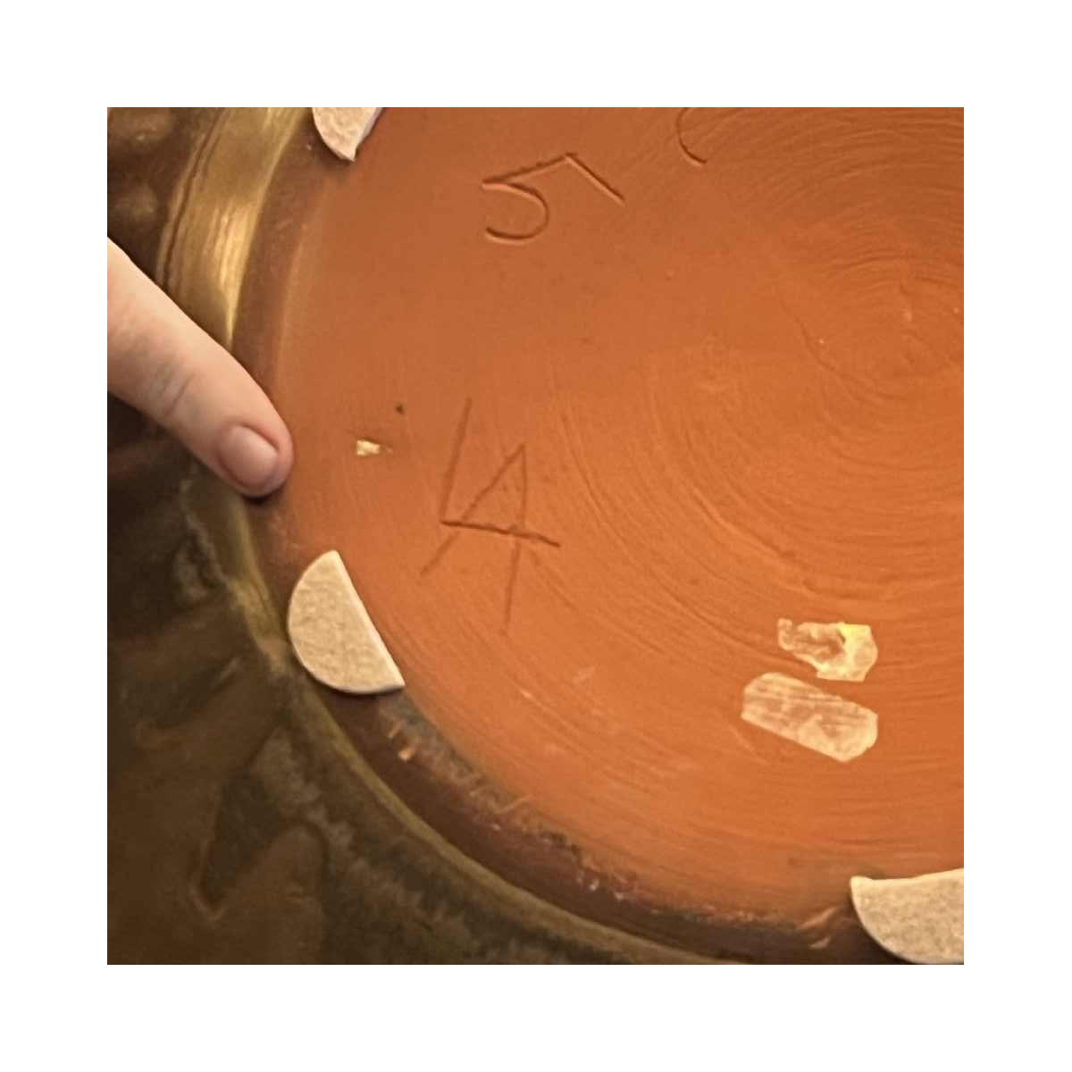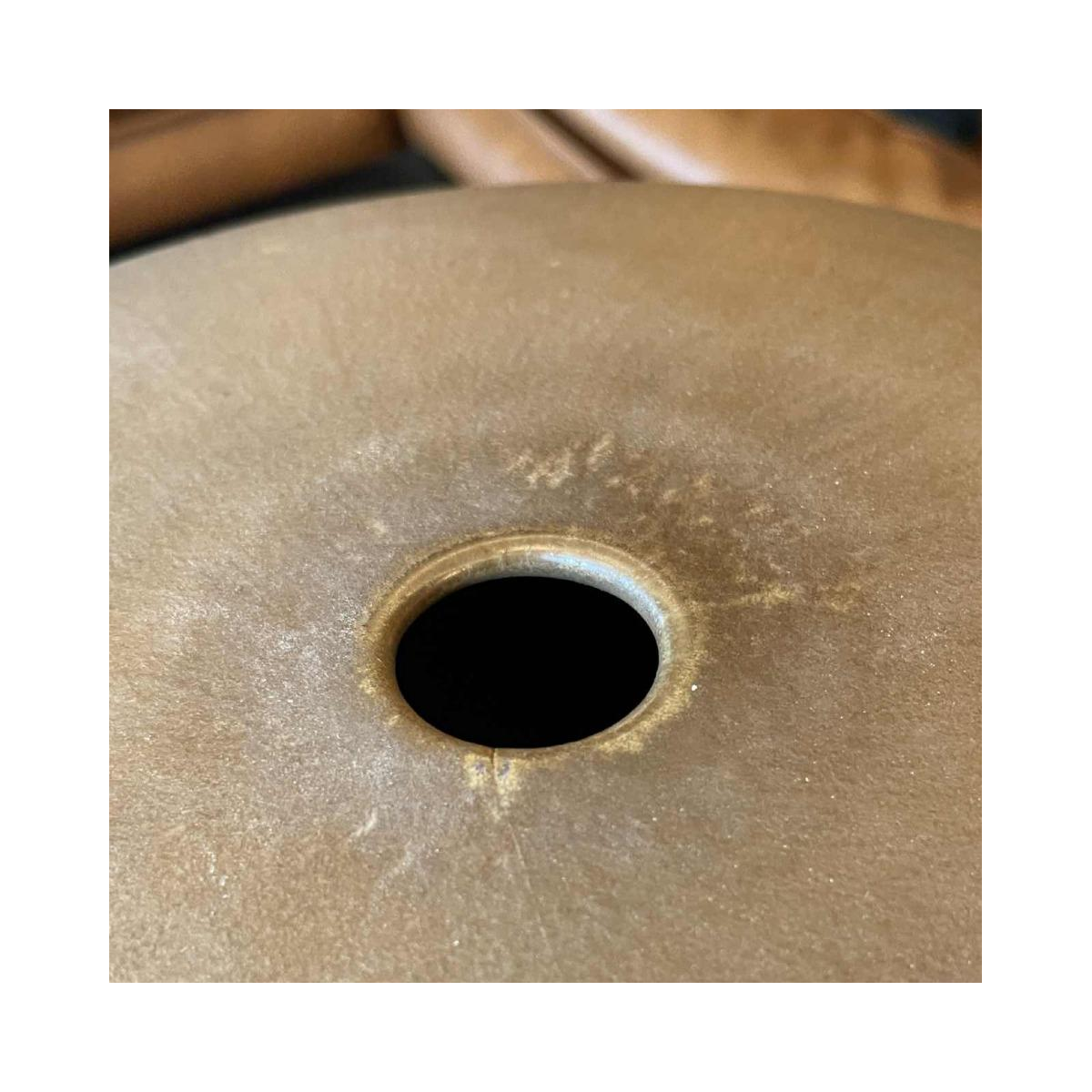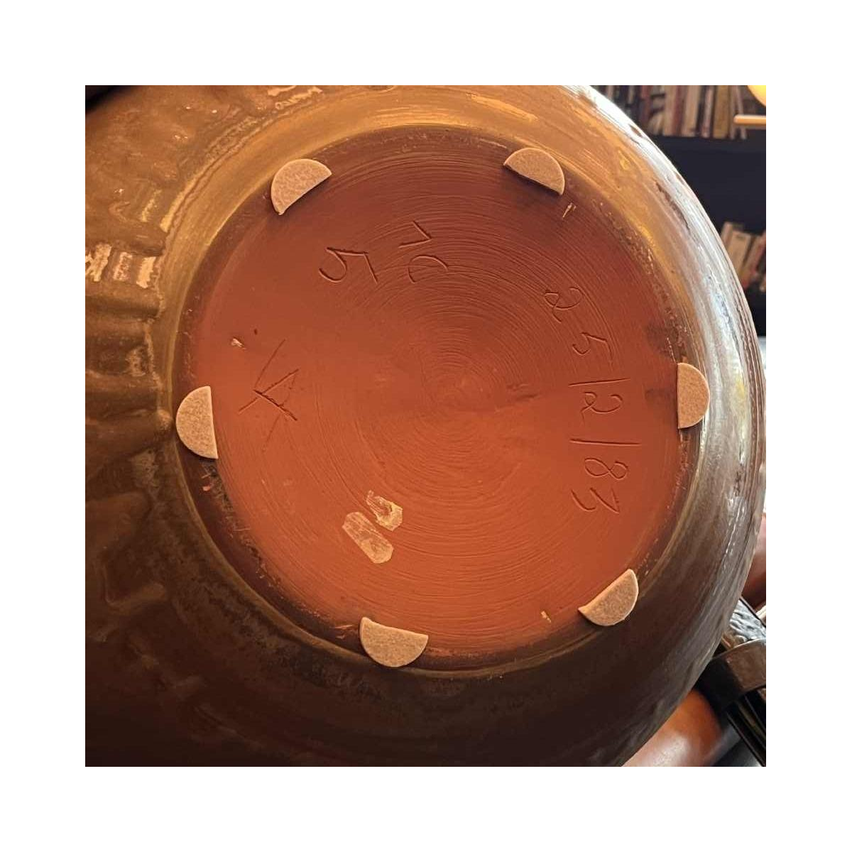 Grote (50cm) bruine keramieken bolvaas gemaakt door Antonio Lampecco in Maredret in 1983.