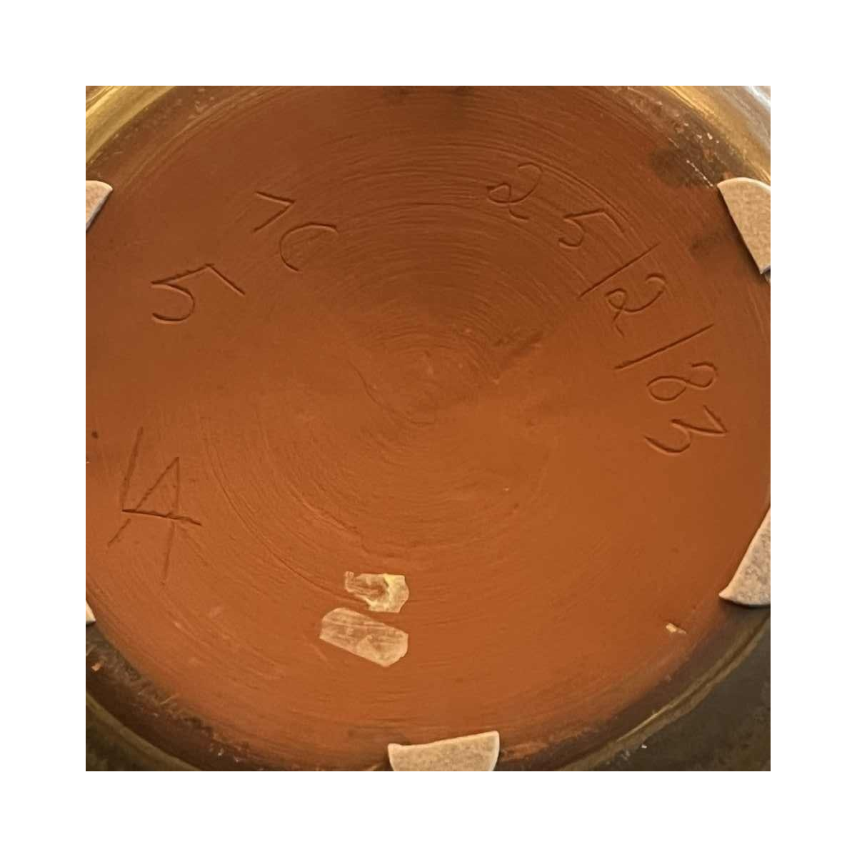 Deze sculptuurachtige vaas is gesigneerd en gedateerd 1983 op de onderkant van de basis.