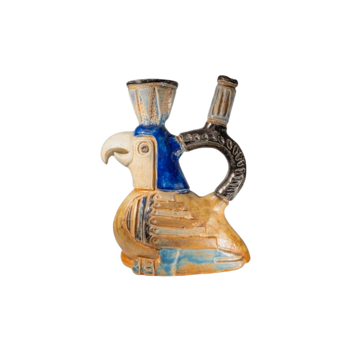 (https://www.artaplaza.com/nl/keramiek-porselein-vazen/3808-jules-guerin-zoomorfe-keramische-sculptuurvaas-inca-azteekse-vogel-steengoed-uit-bouffioulx-jaren-1950.html)