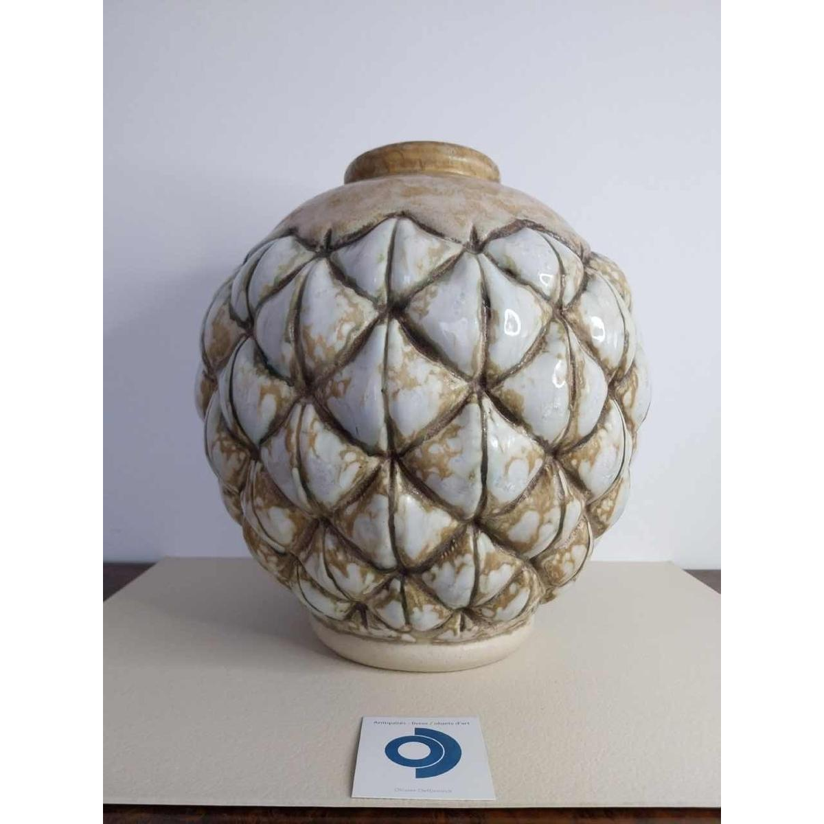 This form is only used to notify us of illegal content on product: Joseph MOUGIN, Art Deco vaas “Pin d'Afrique” van gegoten steengoed, circa 1930.