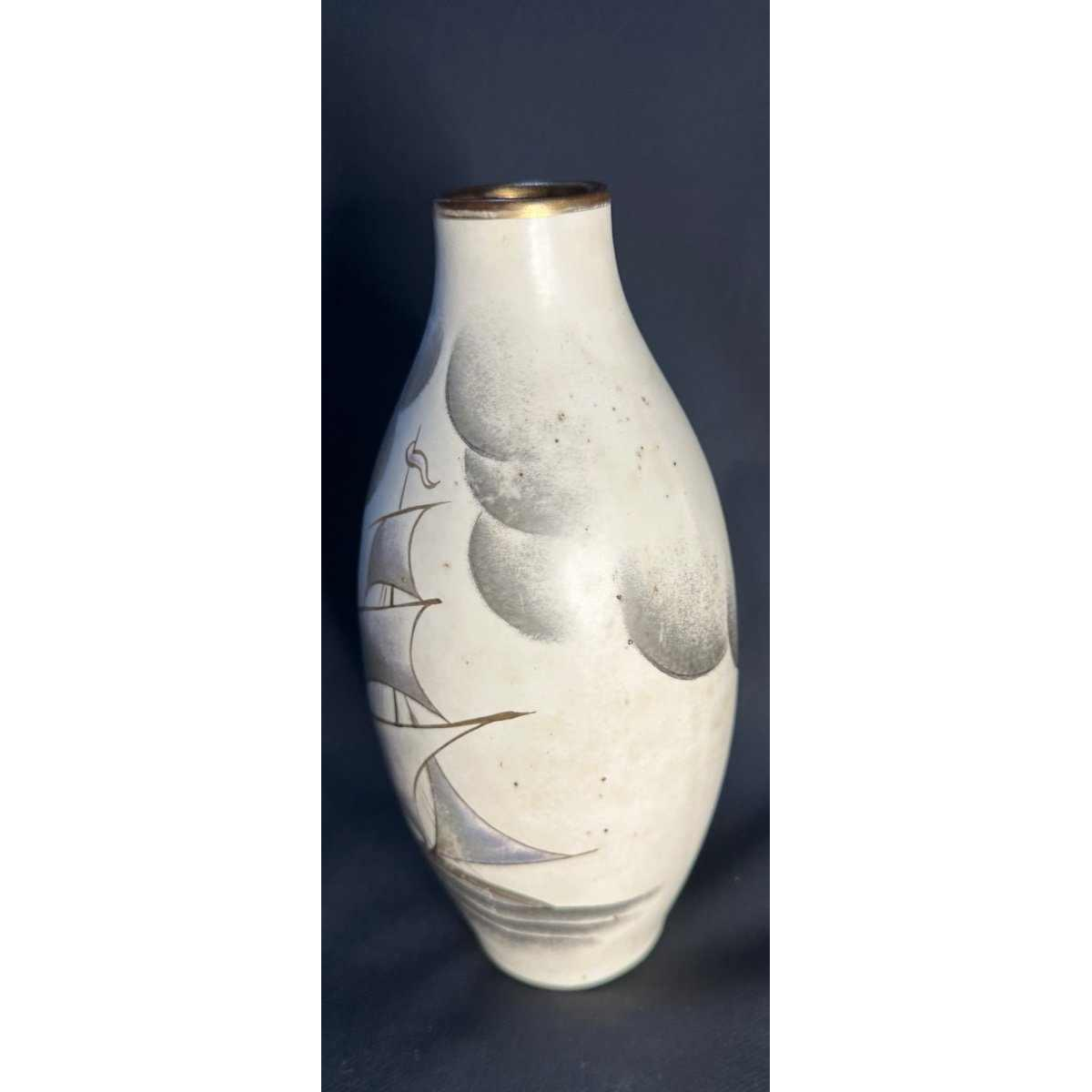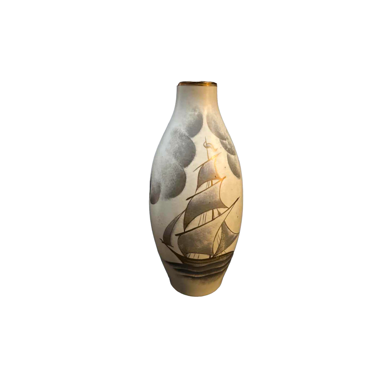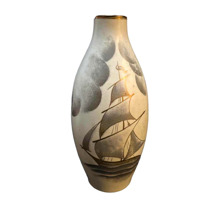 Vaas met bootmotief in keramiek, Boch Frères Kéramis in La Louvière