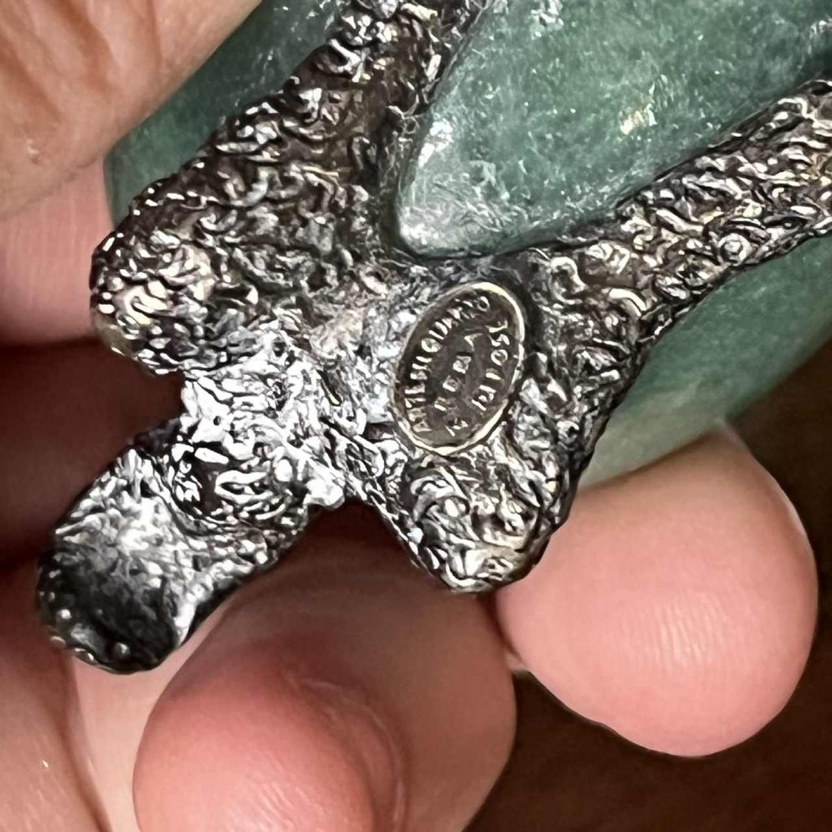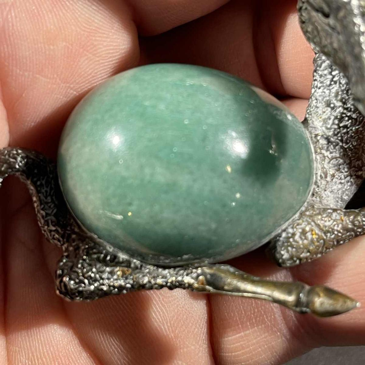 Dierenbeeld van een reekalf in verzilverd brons en groen kwartsei.