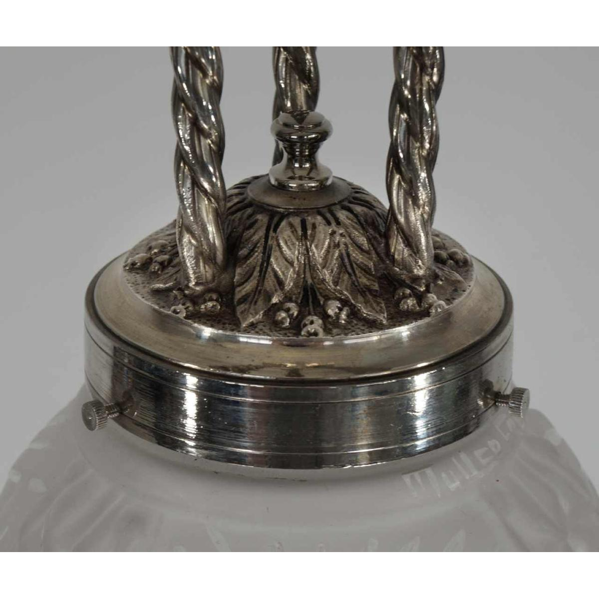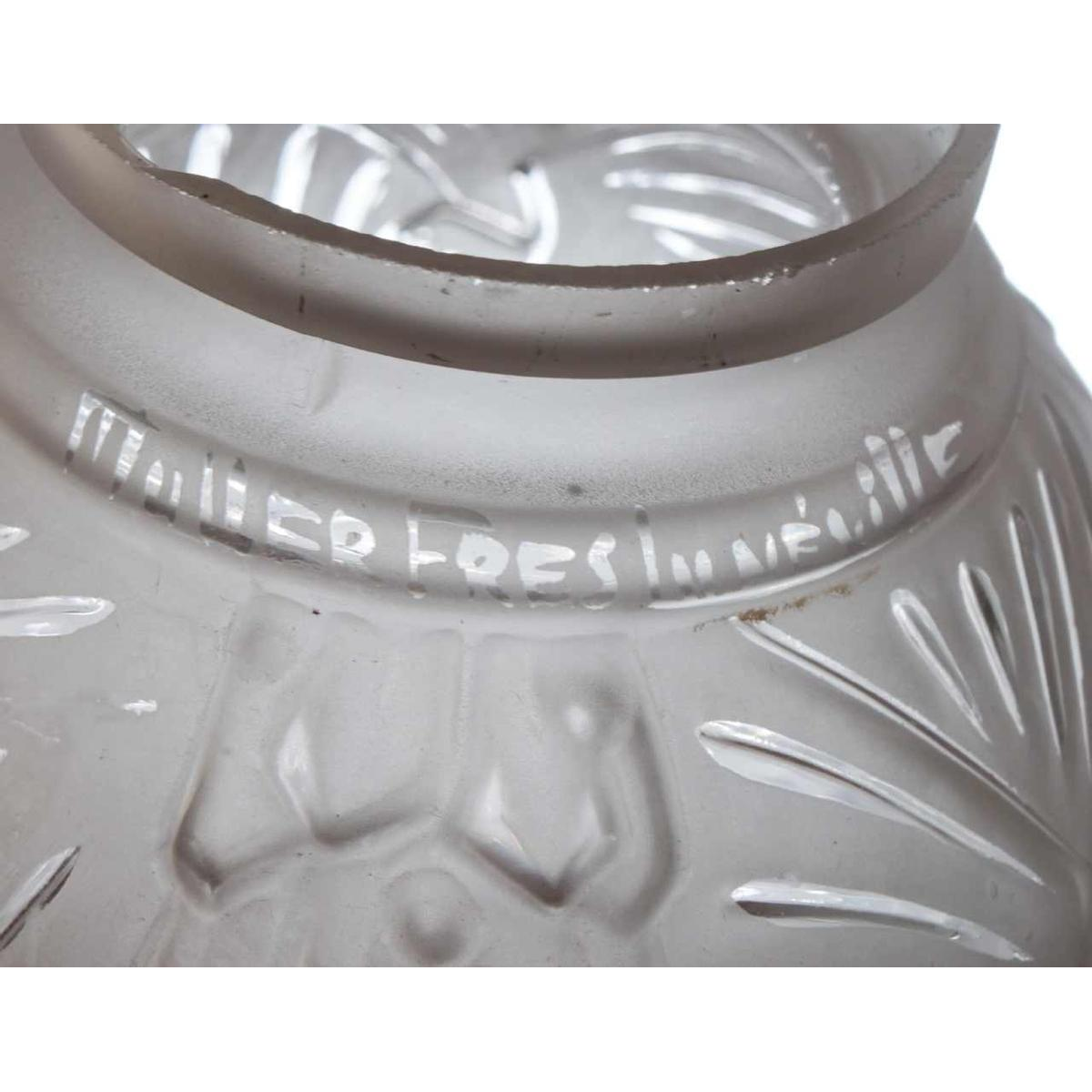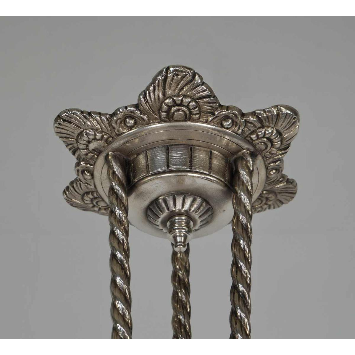 De vader van Henri , Antonin Petitot, starte zijn bedrijf in 1878. In 1917 nam Henri het over en bouwde het bedrijf uit tot één van de grootste manufacturen in art deco verlichting tijdens het interbellum. De hanglamp heeft een hoogte van 47,5 cm en het glas heeft een diameter van ongeveer 15 cm. Ze is in uitstekende staat. Ik heb het montuur opnieuw vernikkeld en gepatineerd en de lamp van nieuwe bedrading voorzien, met een E14 fitting, dus onze moderne gloeilampen kunnen worden gebruikt. Ik zal een LED lampje van goede kwaliteit meeleveren.