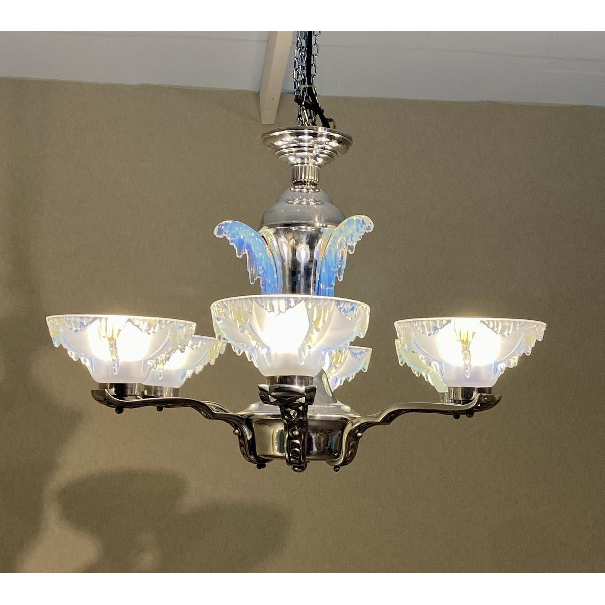 Ezan Petitot Art Deco opaalglazen kroonluchter, circa 1930