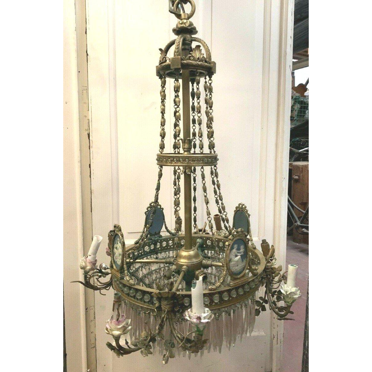 Kroonluchter in Lodewijk XVI-stijl met vier porseleinen platen van Wedgwood.