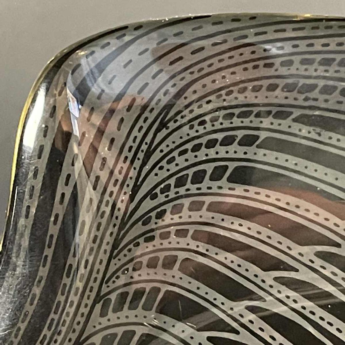 Gemaakt van zogenaamd lucite acryl met geïntegreerd patroon in zwart en grijs.