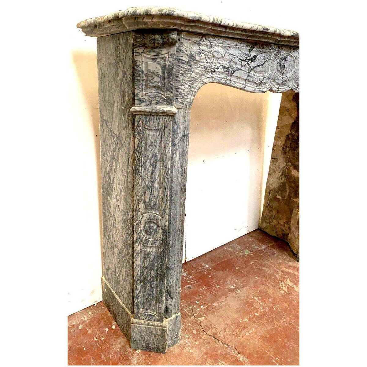 Open haard in Louis XV-stijl, Pompadour-model, blauw Turquin-marmer, 20e eeuw