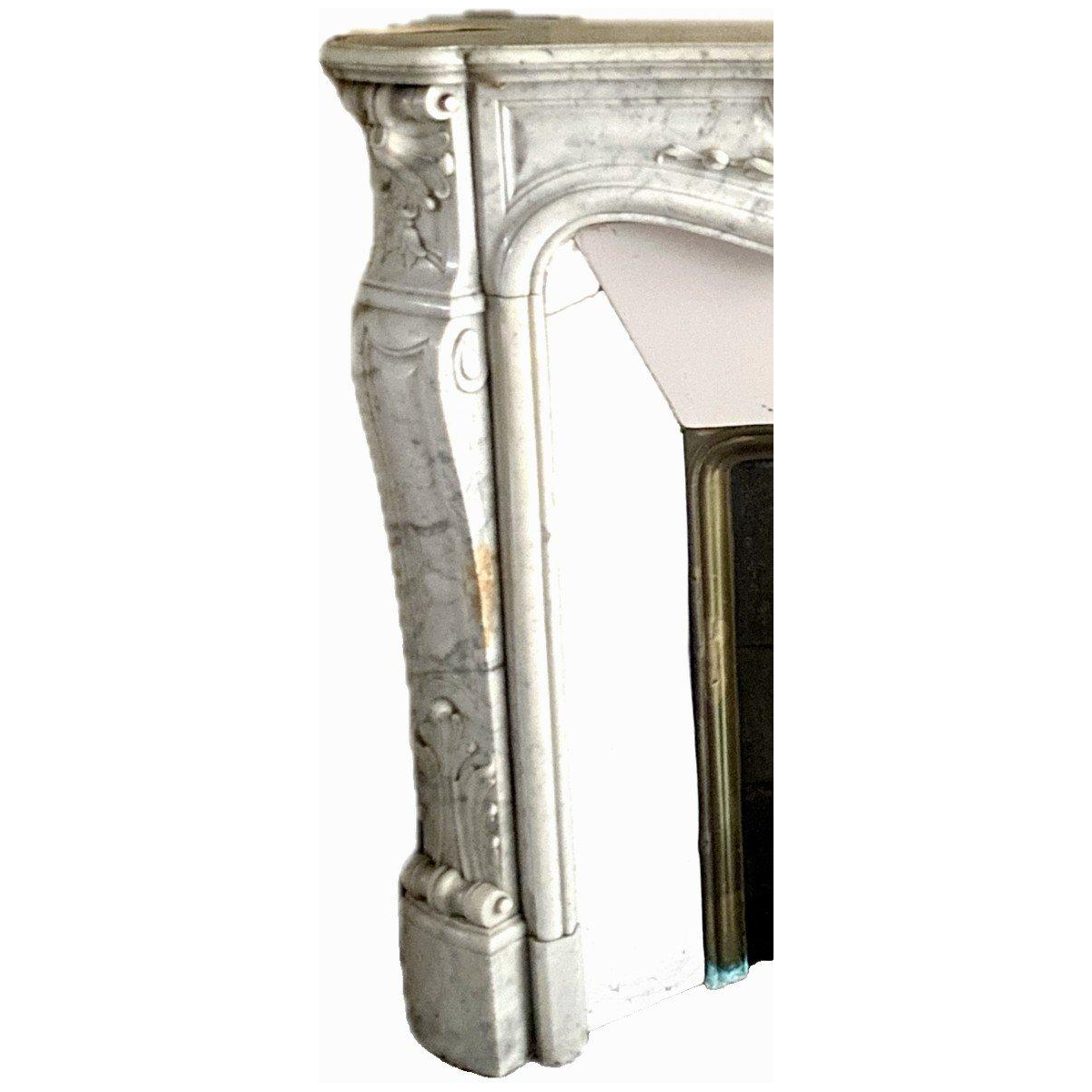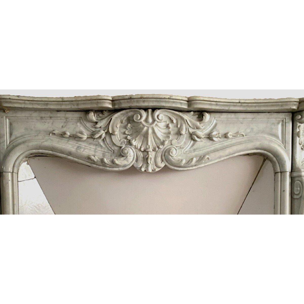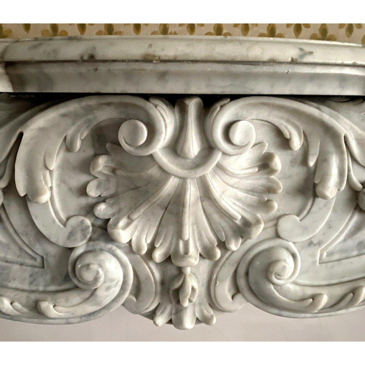 Open haard in Lodewijk XV-stijl van wit Carrara-marmer, 19e eeuw.