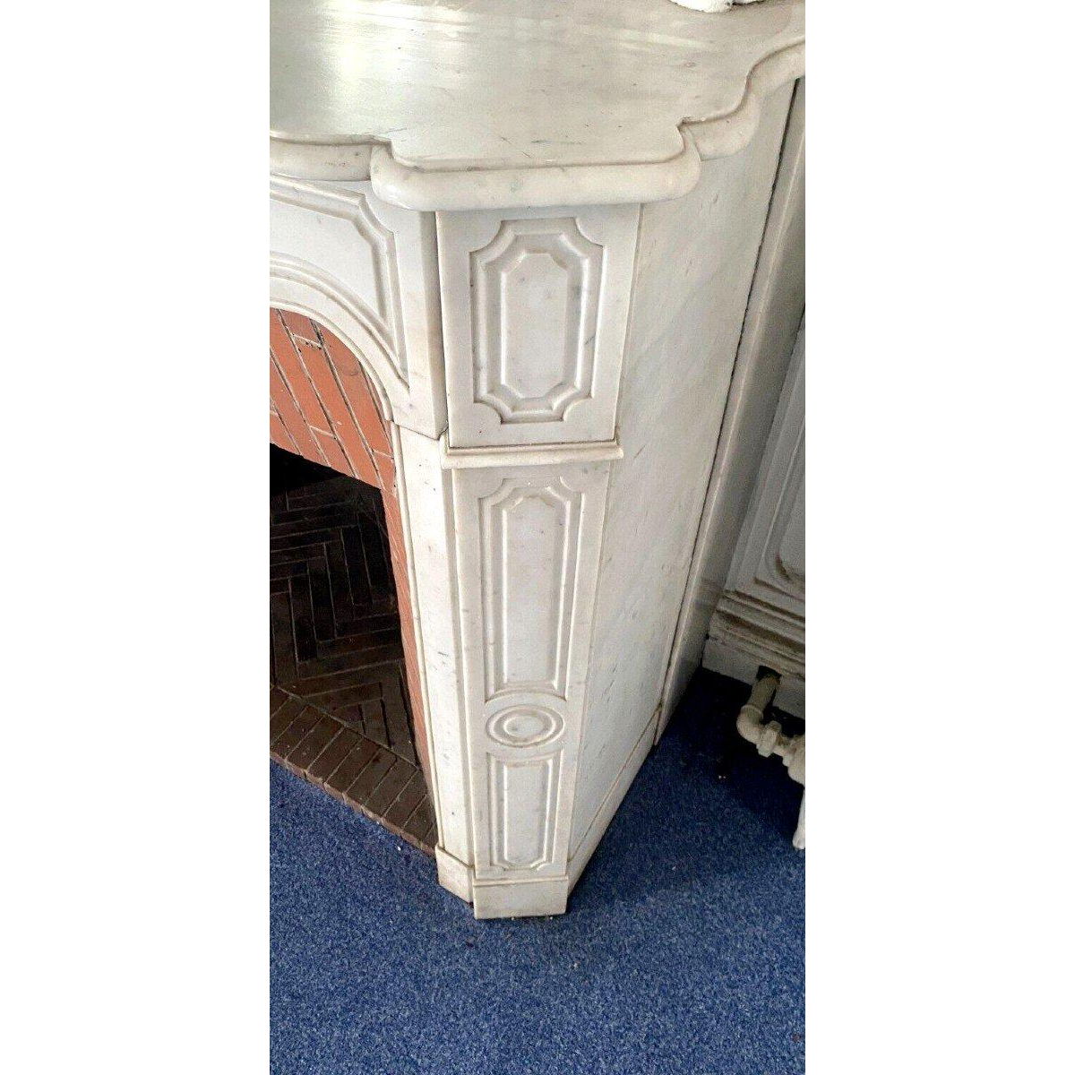 Open haard in Louis XV-stijl, Pompadour-model, van wit Carrara-marmer, 20e eeuw.
