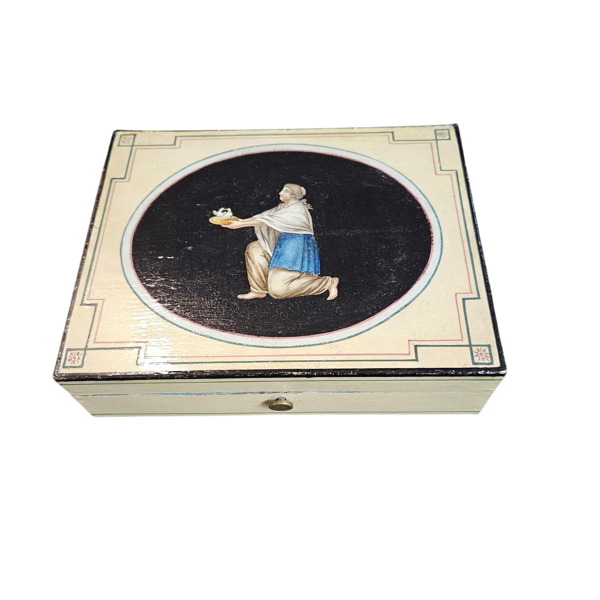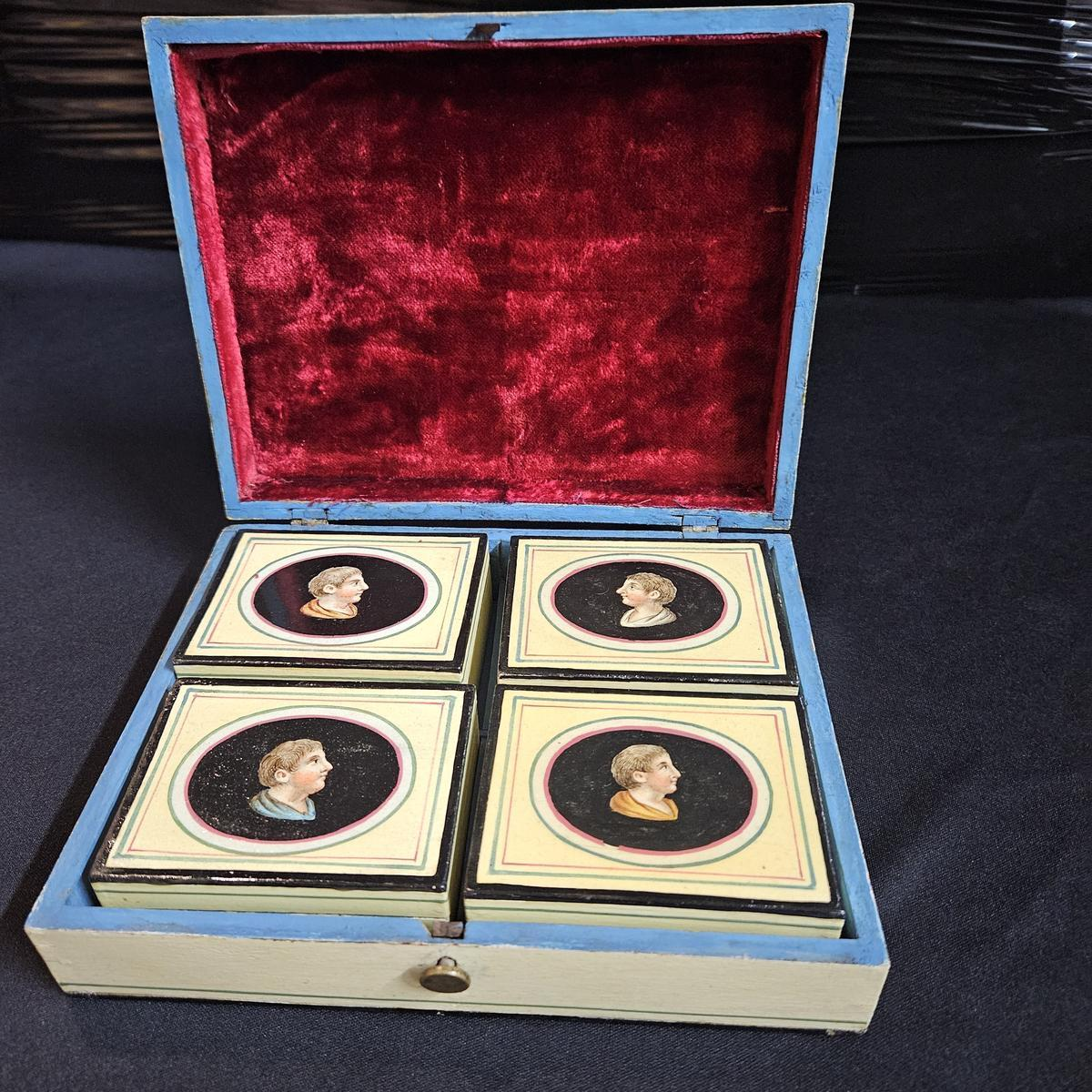Spa-hout, doos met meerdere compartimenten, beschilderd met figuren en portretten, Empire-periode, ca. 1810