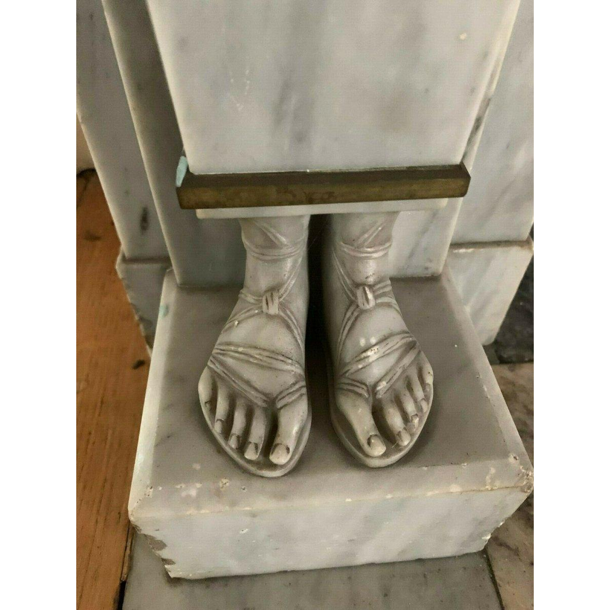 Een beeldhouwwerk van grote verfijning, met name in de weergave van de gezichten en voeten.