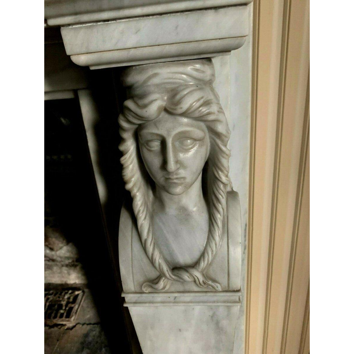 Prachtige open haard van Bleu Turquin marmer in Empire-stijl, Egyptische Revival.