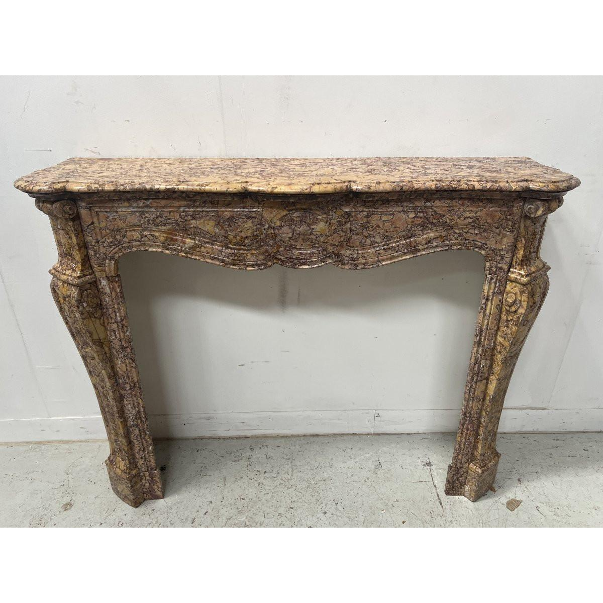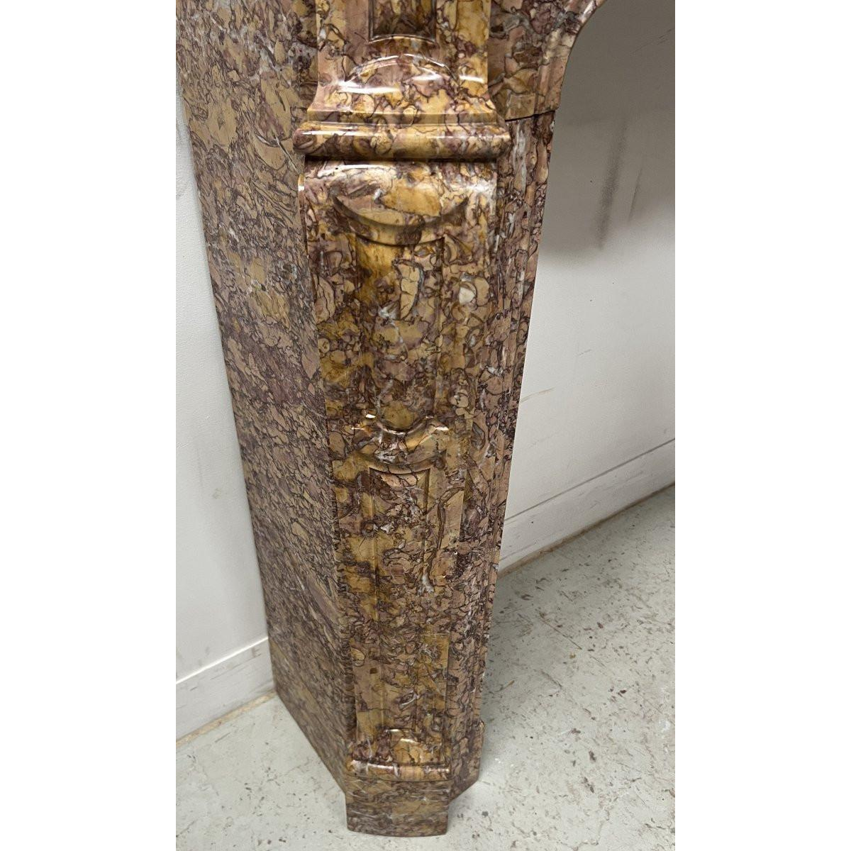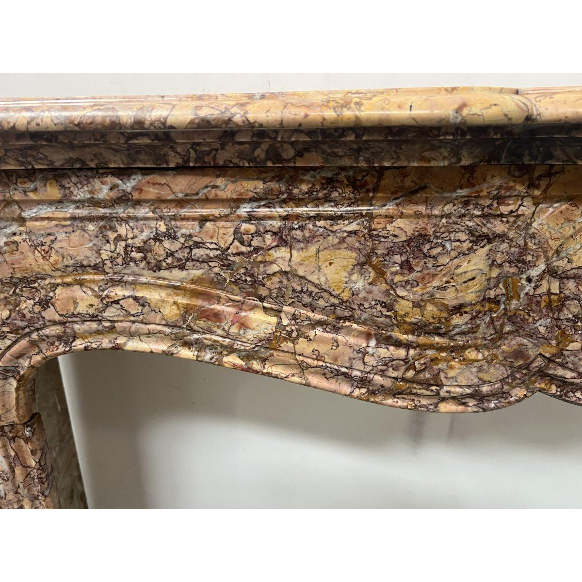 Open haard in Lodewijk XV-stijl, Pompadour-model, gespikkeld breccia-marmer, 19e eeuw