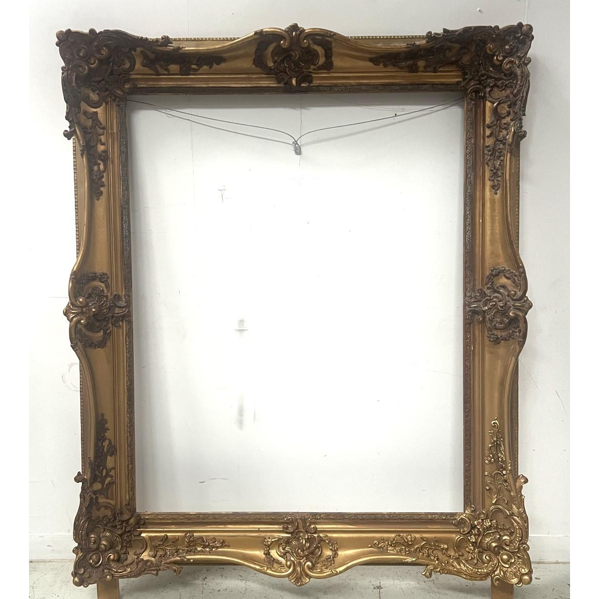 Grote lijst in Lodewijk XV-stijl, gemaakt van hout en verguld stucwerk.
