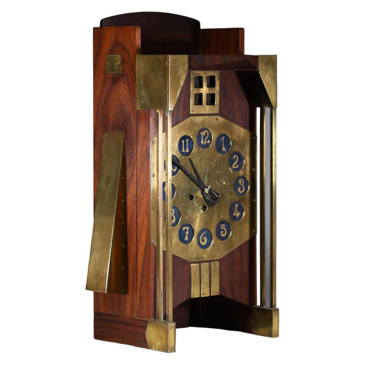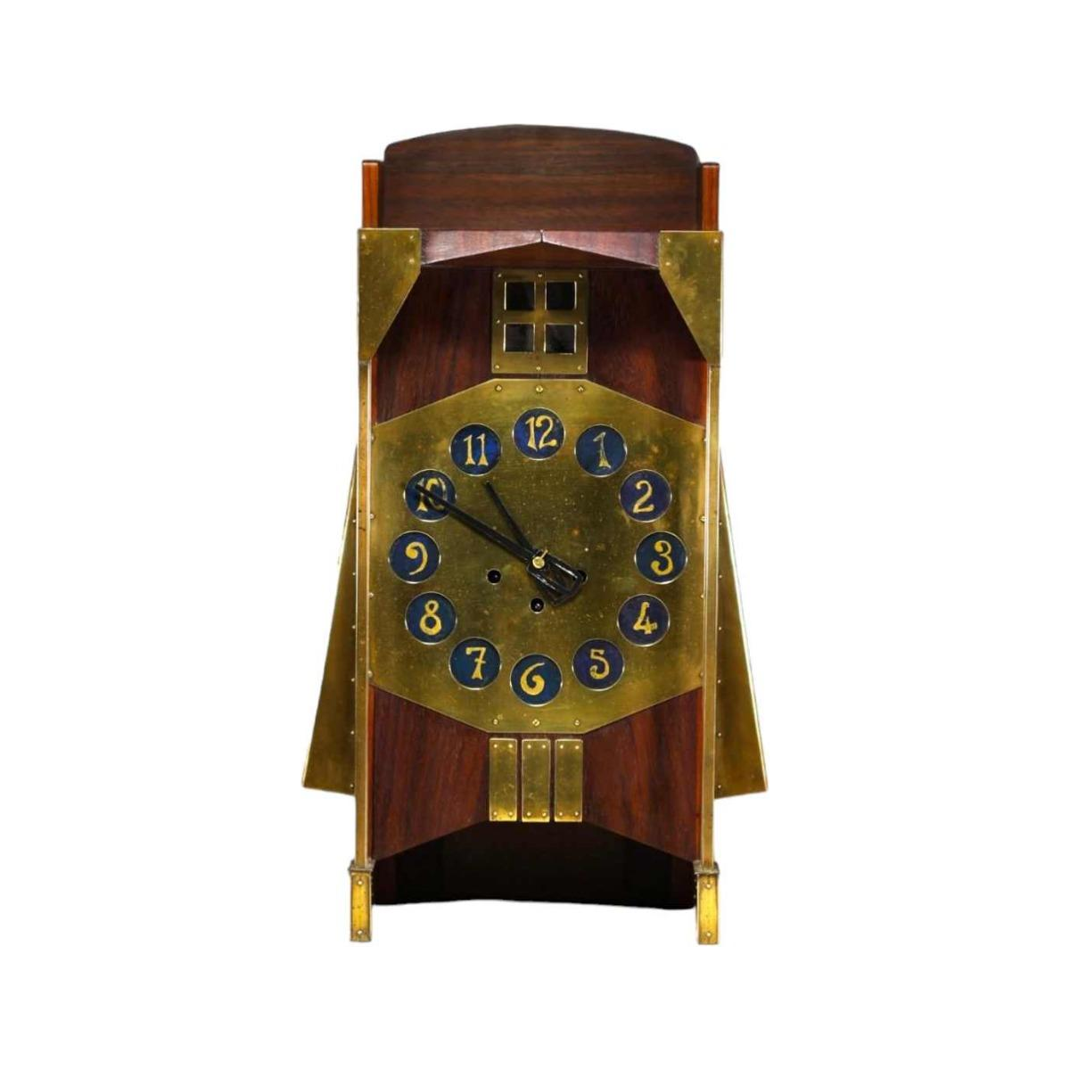 Gustave Serrurier-Bovy 'Pendule Moulin' Jugendstil klok, mahonie & messing, 1905
