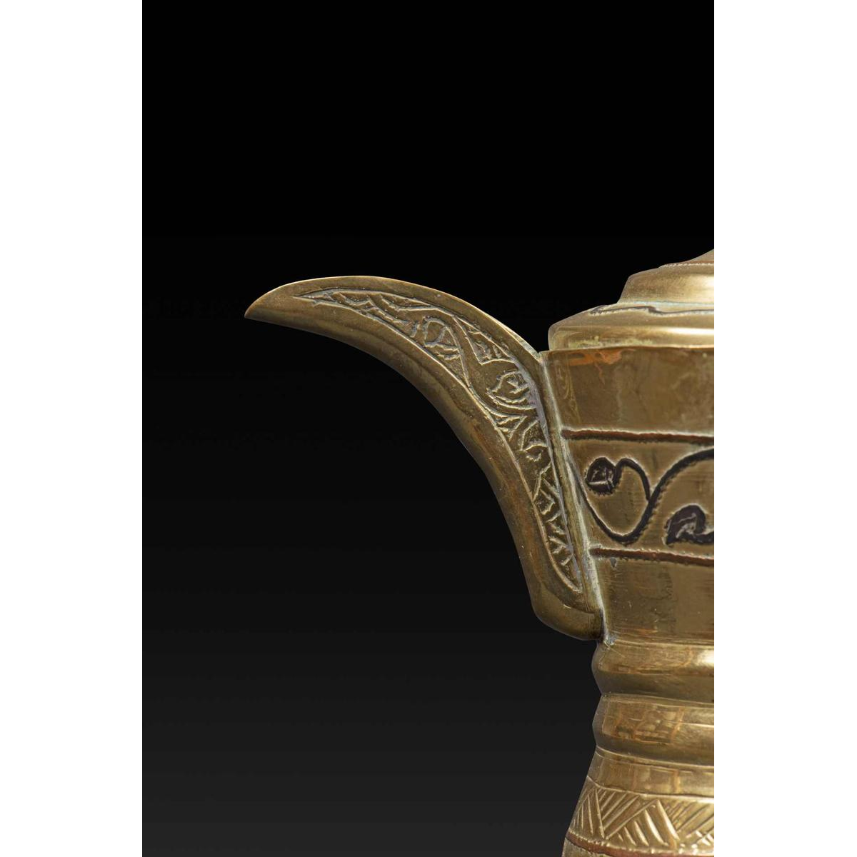 De dallah is gemaakt van messing, staal, zilver of goud, met traditionele motieven zoals de draaikolk en de vierkante bloem.