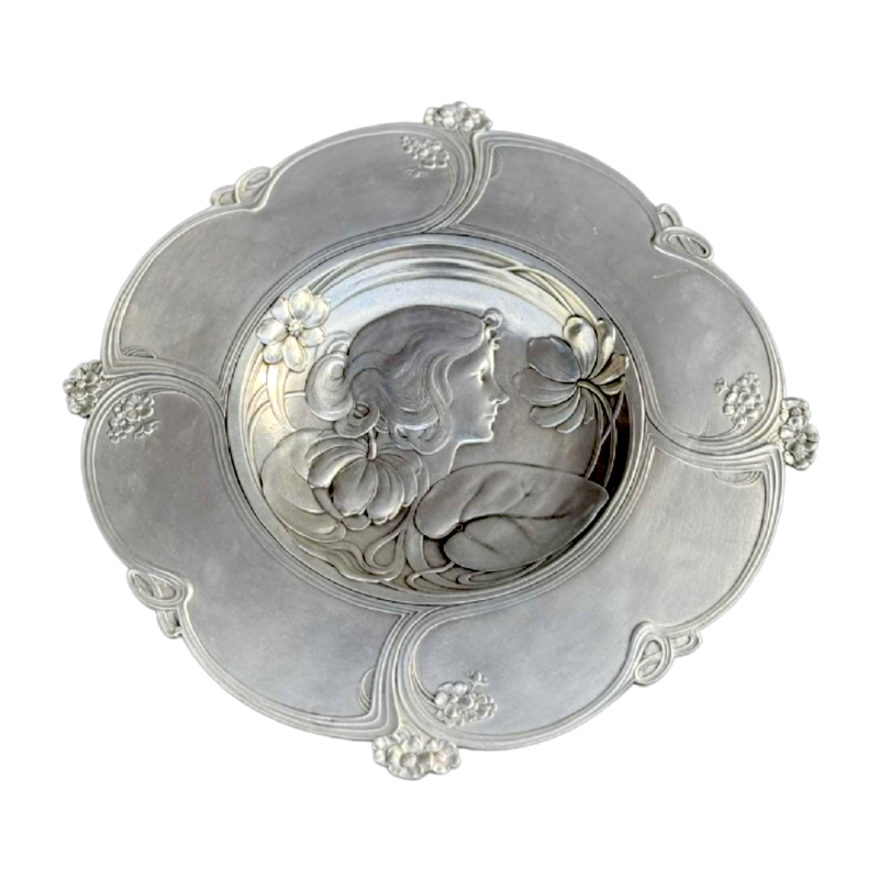 Achille Gamba, Art Nouveau tinnen bord, ca 1900