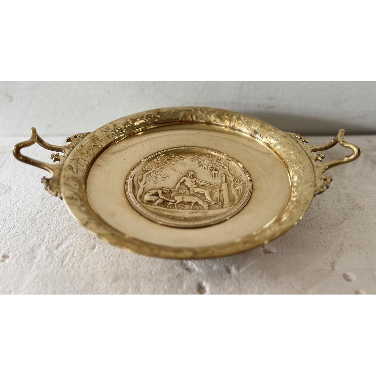 Zeer fraaie verguld bronzen schaal op voet, met antieke decoratie op de voet en de rand.