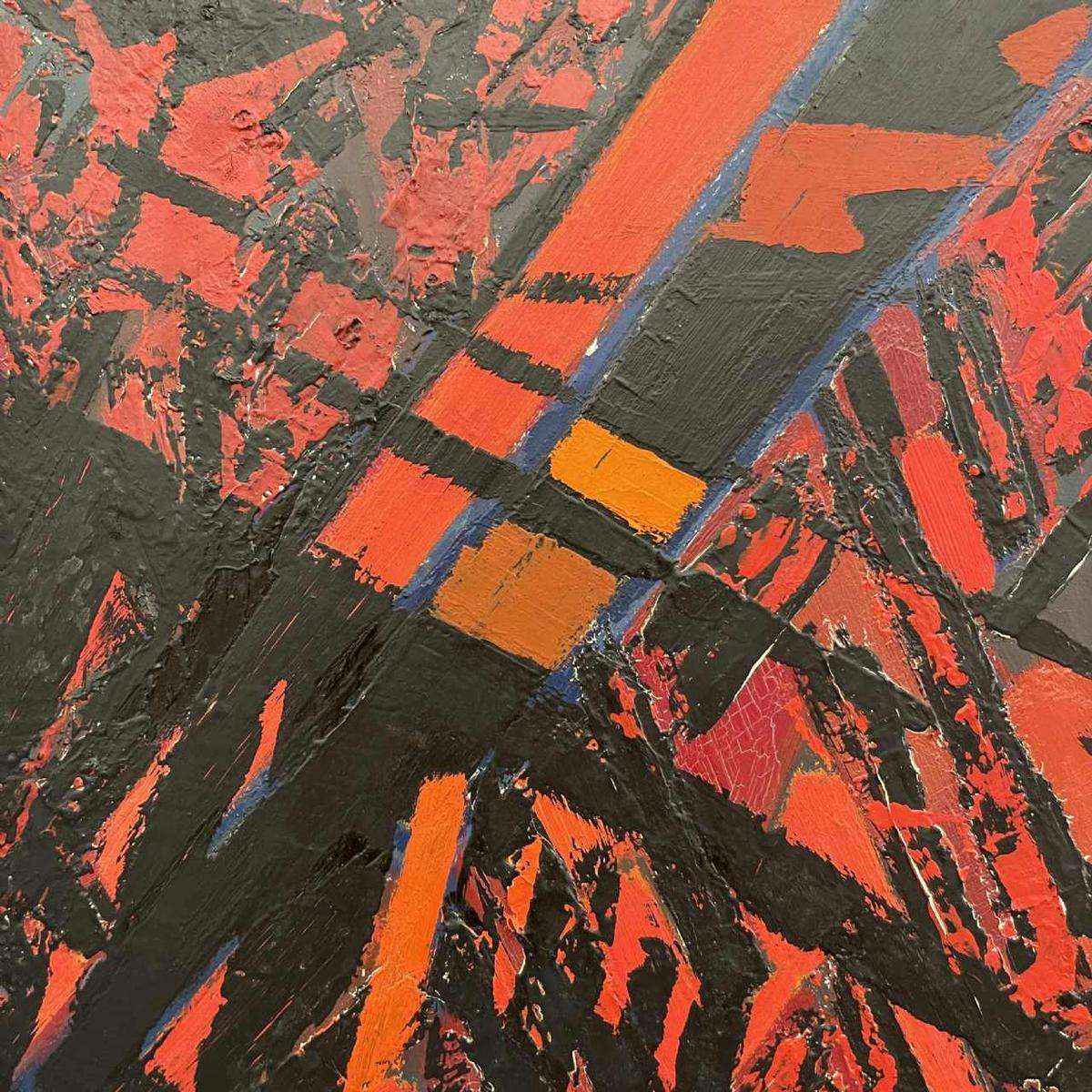 Serge Detriaux, abstract schilderij "Stadsplan", olieverf op paneel, ca. 1988
