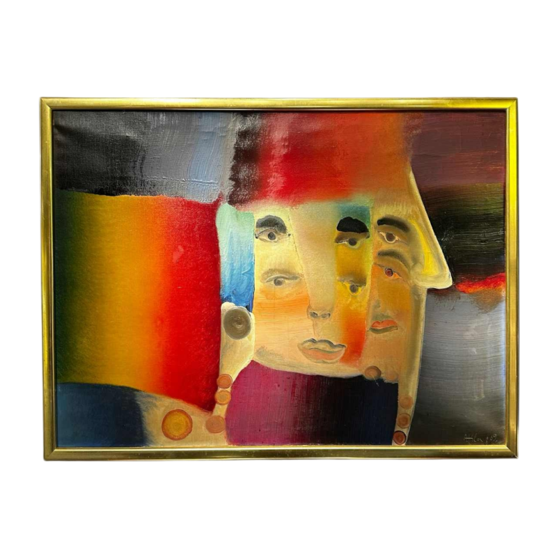Atila Biro, abstract schilderij, olieverf op doek, 1969