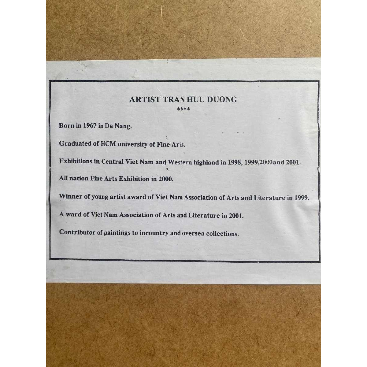 Schilderij van de Vietnamese kunstenaar Tran Huu Duong. Afgestudeerd aan de HCM University of Fine Arts. Prijswinnaar van de Vietnamese vereniging voor kunst en literatuur.