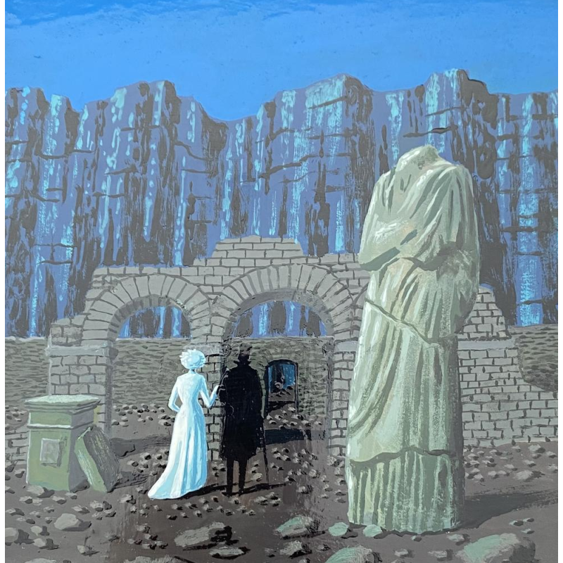 Het schilderij bevat vele symbolen die kenmerkend zijn voor het werk van deze schilder: het gebouw, de oude ruïnes, de figuur met hoge hoed, van achteren gezien, in zwart, de vrouw in wit, de natuur en de nacht.