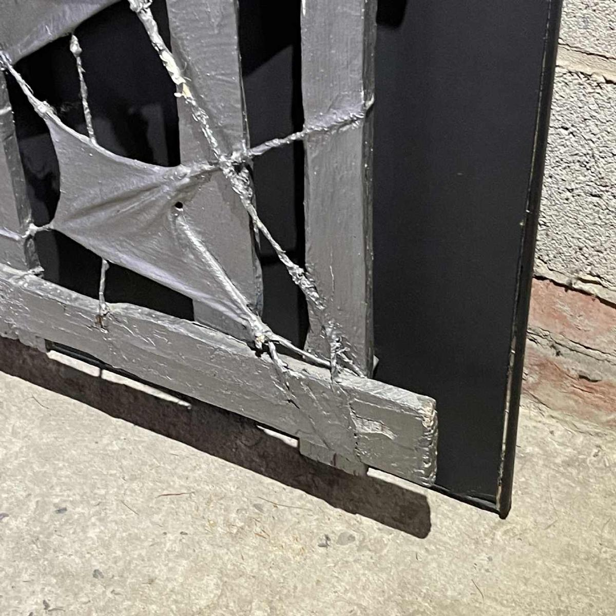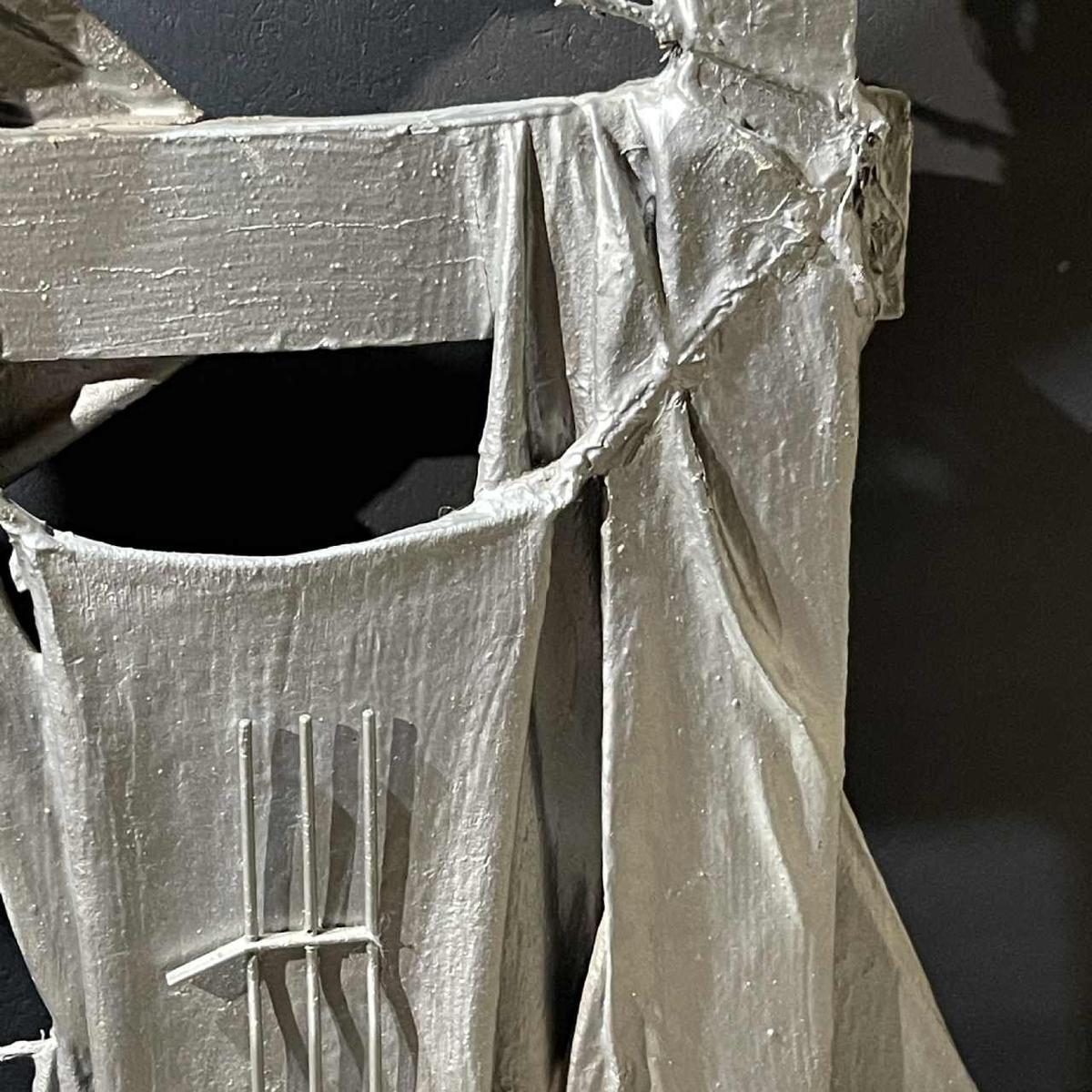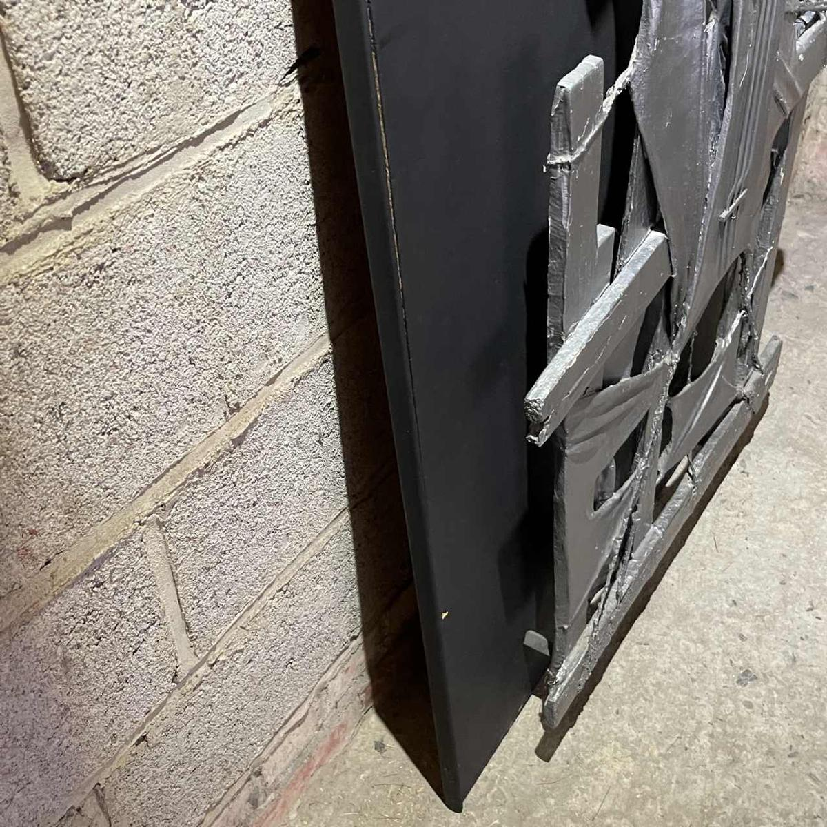 Een opvallend werk, deels brutalistische muursculptuur, deels abstract schilderij.