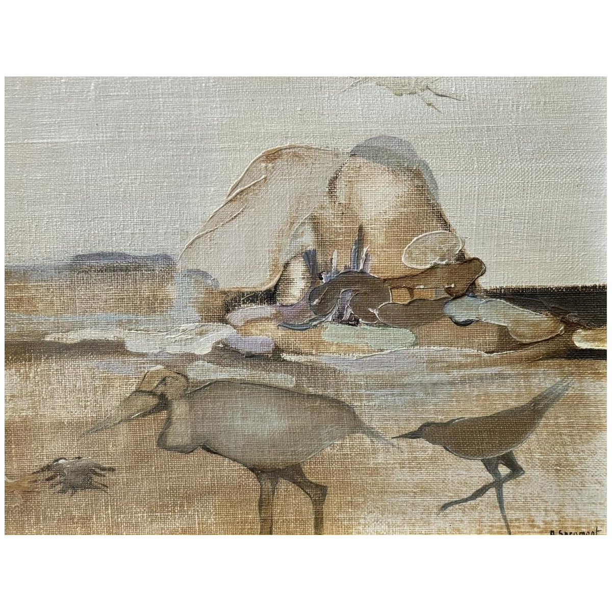 André SPRUMONT - Abstract landschap met steltlopers - olieverfschilderij op canvas