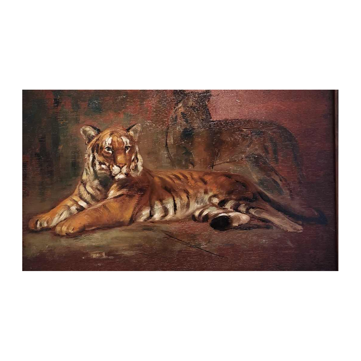 Henri van Zuylen, olieverf op paneel, aan beide zijden beschilderd, landschap en tijgers.