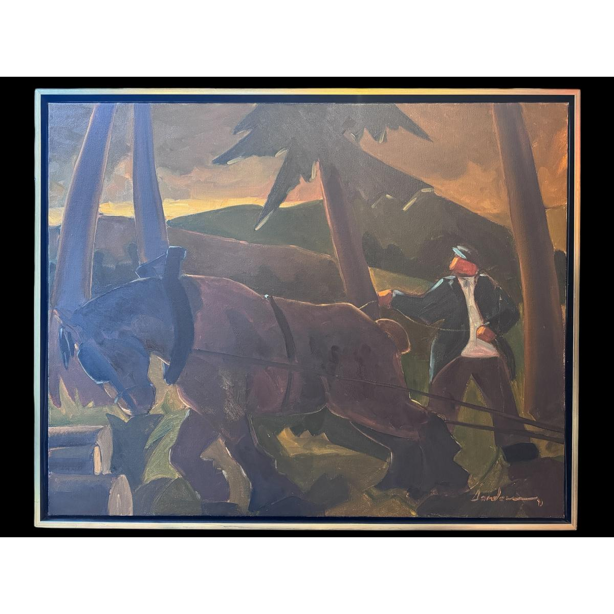 Milo Dardenne “Het trekpaard en zijn menner bij zonsondergang”, olieverfschilderij op canvas