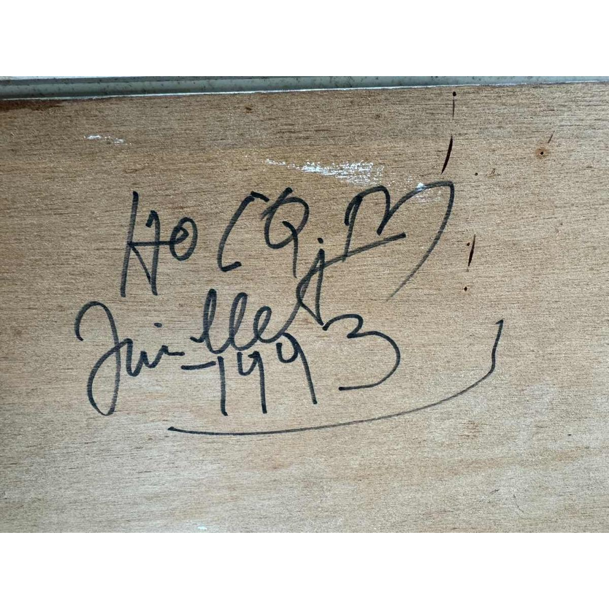 Een prachtig werk uit 1993 van de kunstenaar die 3 jaren geleden overleed is afkomstig uit een grote kunstcollectie in de regio Namur. Het kunstwerk kan zonder omlijsting worden gekocht. Marcel Hocq (geboren in 1933) is een Belgische autodidactische schilder, beeldhouwer en expressionist. Nadat zijn werk zich geleidelijk heeft bevrijd van verschillende artistieke stromingen, vertaalt hij uiteindelijk de kracht van een hernieuwd expressionisme door middel van schilderijen met stevige bewerkten, waarvan 'de soberheid van de middelen het poëtische klimaat accentueert'. Hoewel hij geïnspireerd is door nostalgische jeugdherinneringen (kermissen, ritten, circussen, verlovingen en bruiloften), houdt hij van dieren (katten, geiten en paarden), blijft de vrouw nog steeds het middelpunt van zijn zorgen. Hij vertegenwoordigt haar met een onbewogen en sereen gezicht, alleen verlicht door grote, vage ogen die naar de verafgelegen. Zijn schilderijen, zowel in België als in het buitenland, zijn te vinden in de privécollecties (België, Frankrijk, Canada, Nederland, Duitsland, Spanje) en openbare collecties (collecties van de Belgische staat, de Waalse regio, de provincie Namen, de steden Kaprijke, Sambreville).