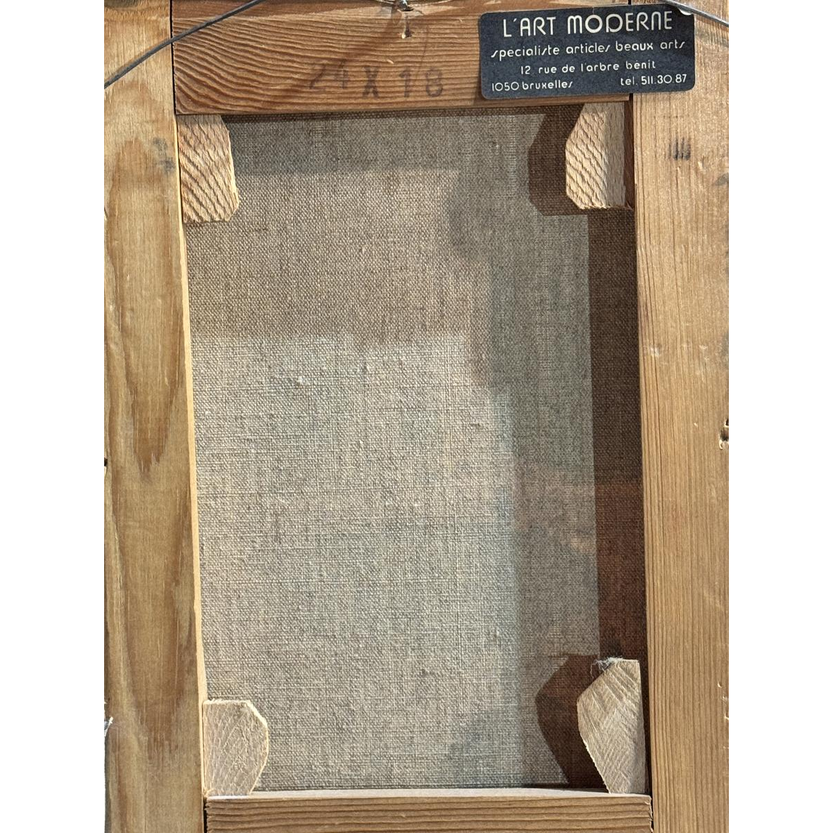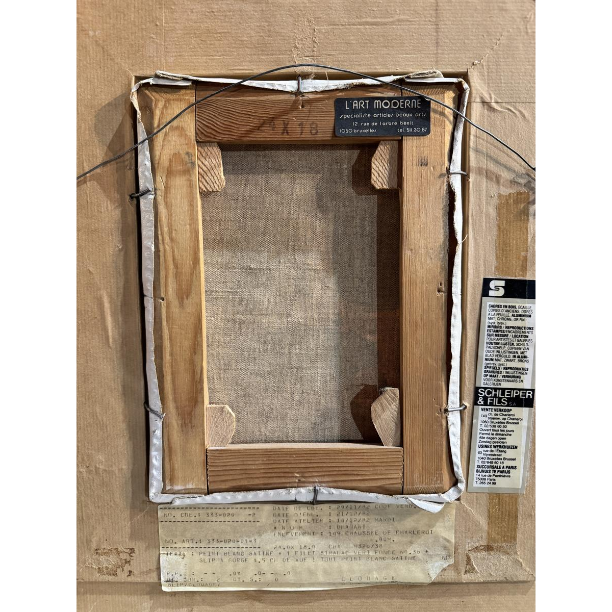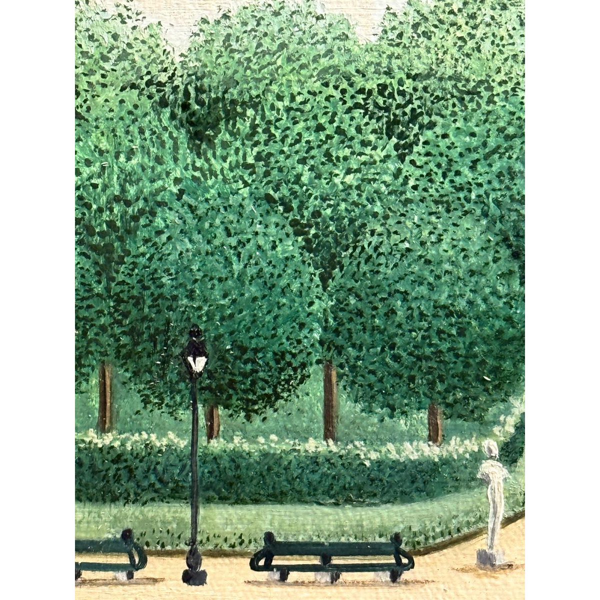 Prachtig naïef schilderij met scènes uit het dagelijks leven in een Brussels park: spelende kinderen, een wandelende persoon... Schilderij uit begin jaren 70 (de lijst is in 1972 door Schleiper gemaakt).