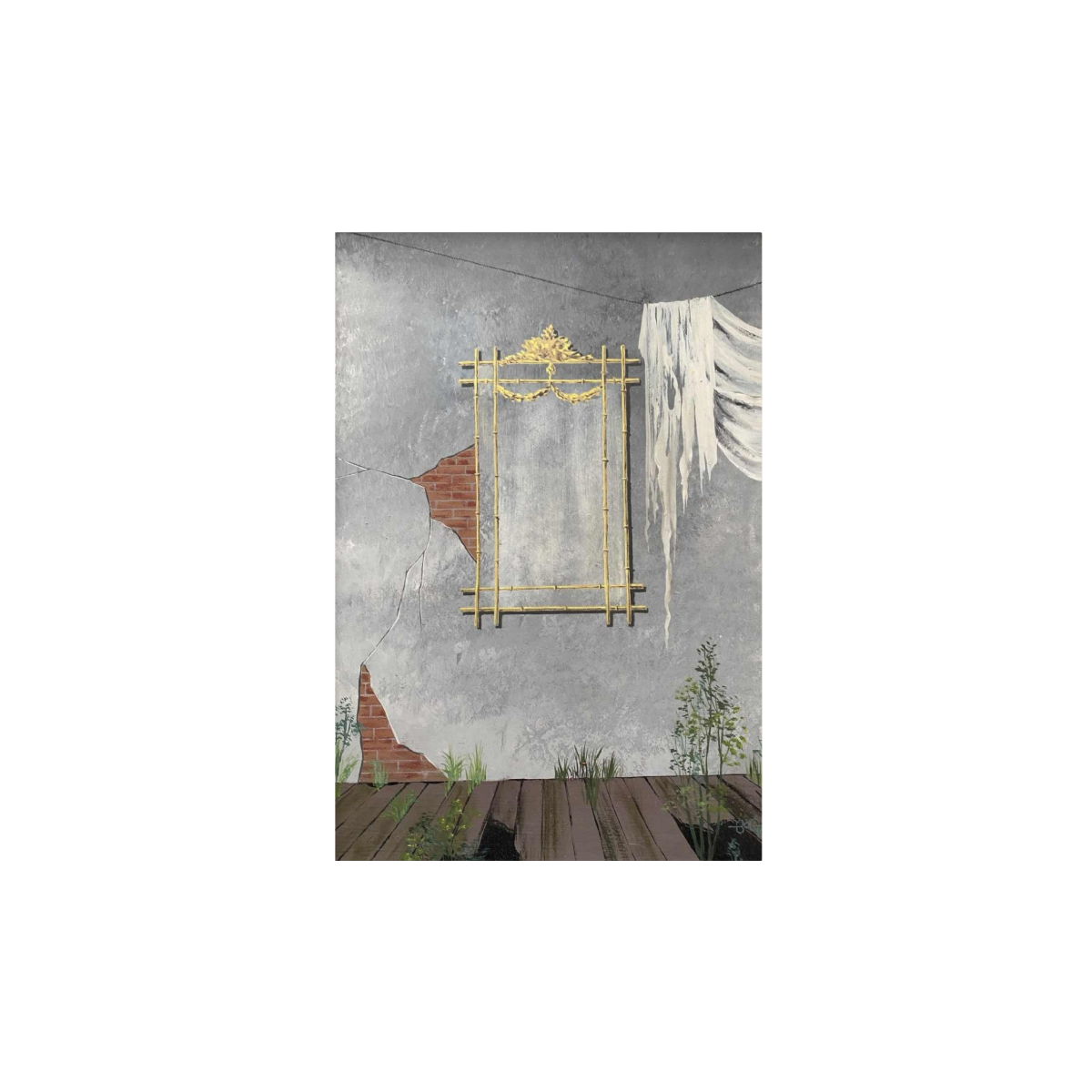 Gaston Bogaert De spiegel surrealistisch schilderij, olieverf op paneel