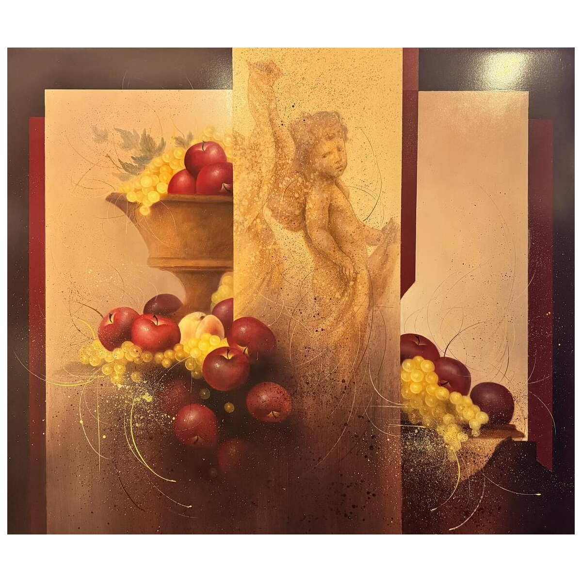 Jean-Claude Dresse “Compositie met cherubijn en fruit”, olieverfschilderij op paneel