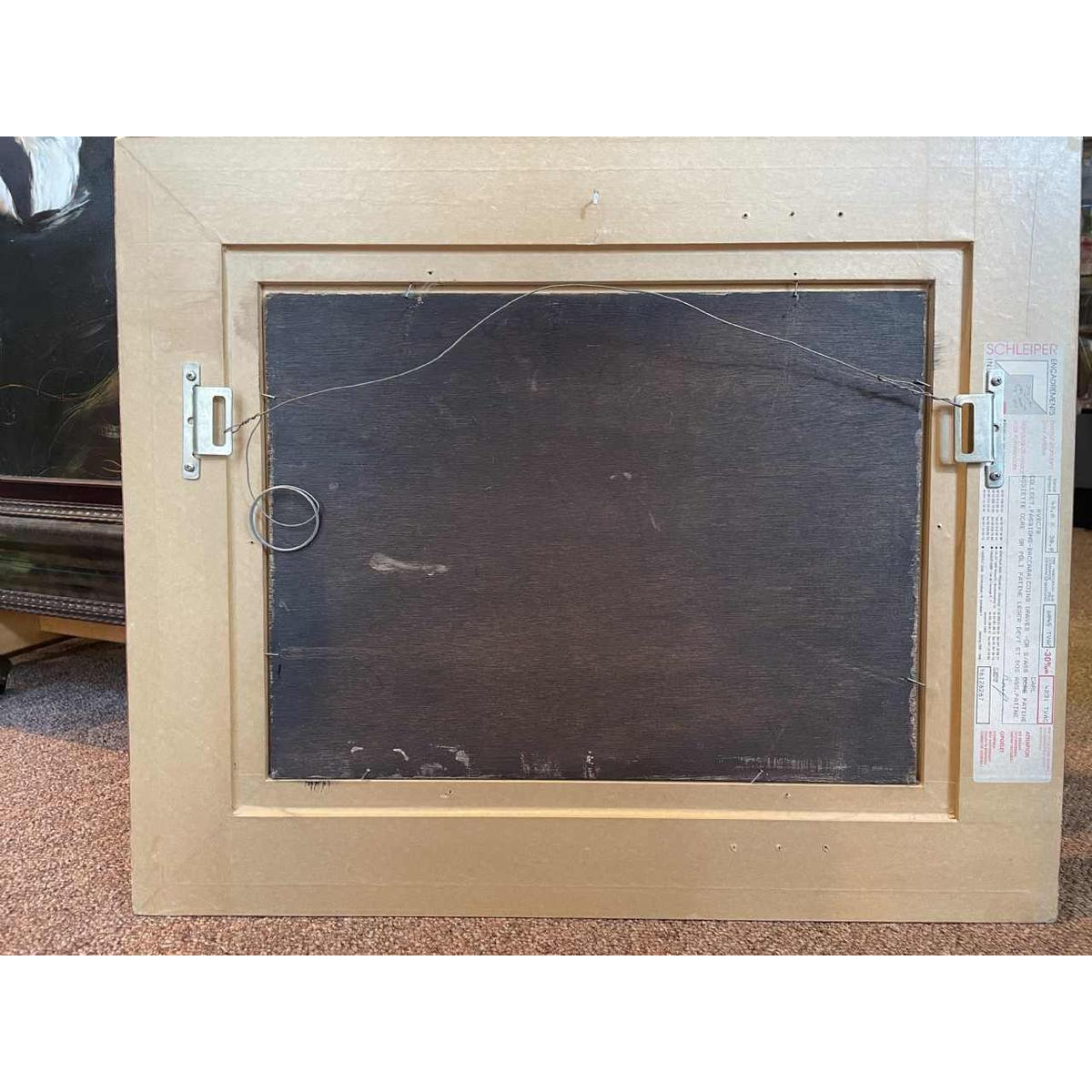 Olieverf op paneel "De jonge vrouw en haar paard", gedateerd op de achterzijde mei 1993, met een prachtige lijst afkomstig uit het huis Schleiper in Bruxelles.Marcel Marcel Hocq is een autodidactisch schilder, beeldhouwer en expressionistisch keramist uit België, geboren in 1933. Nadat hij zich geleidelijk aan heeft losgemaakt van verschillende kunststromingen, vertaalt zijn werk uiteindelijk de kracht van een hernieuwd expressionisme in solide gestructureerde schilderijen waarvan de soberheid van middelen het poëtische klimaat accentueert. Hoewel hij wordt geïnspireerd door nostalgische jeugdherinneringen (kermissen, attracties, circussen, verlovingen en bruiloften), en hoewel hij van dieren houdt (katten, geiten en paarden), blijft de vrouw desalniettemin het middelpunt van zijn belangstelling; hij beeldt haar af met een onbewogen en sereen gezicht, slechts verlicht door grote, vage ogen die in de verte staren. Zijn schilderijen zijn zowel in België als in het buitenland te zien en bevinden zich in privécollecties (België, Frankrijk, Canada, Nederland, Duitsland, Spanje) en openbare collecties (collecties van de Belgische Staat, het Waalse Gewest, de provincie Namen, de steden Kaprijke en Sambreville).
