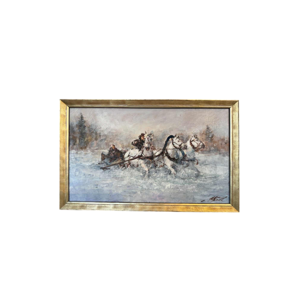 This form is only used to notify us of illegal content on product: "Troïka" kunstenaar nog te identificeren, olieverf schilderij op doek gedateerd 2002.