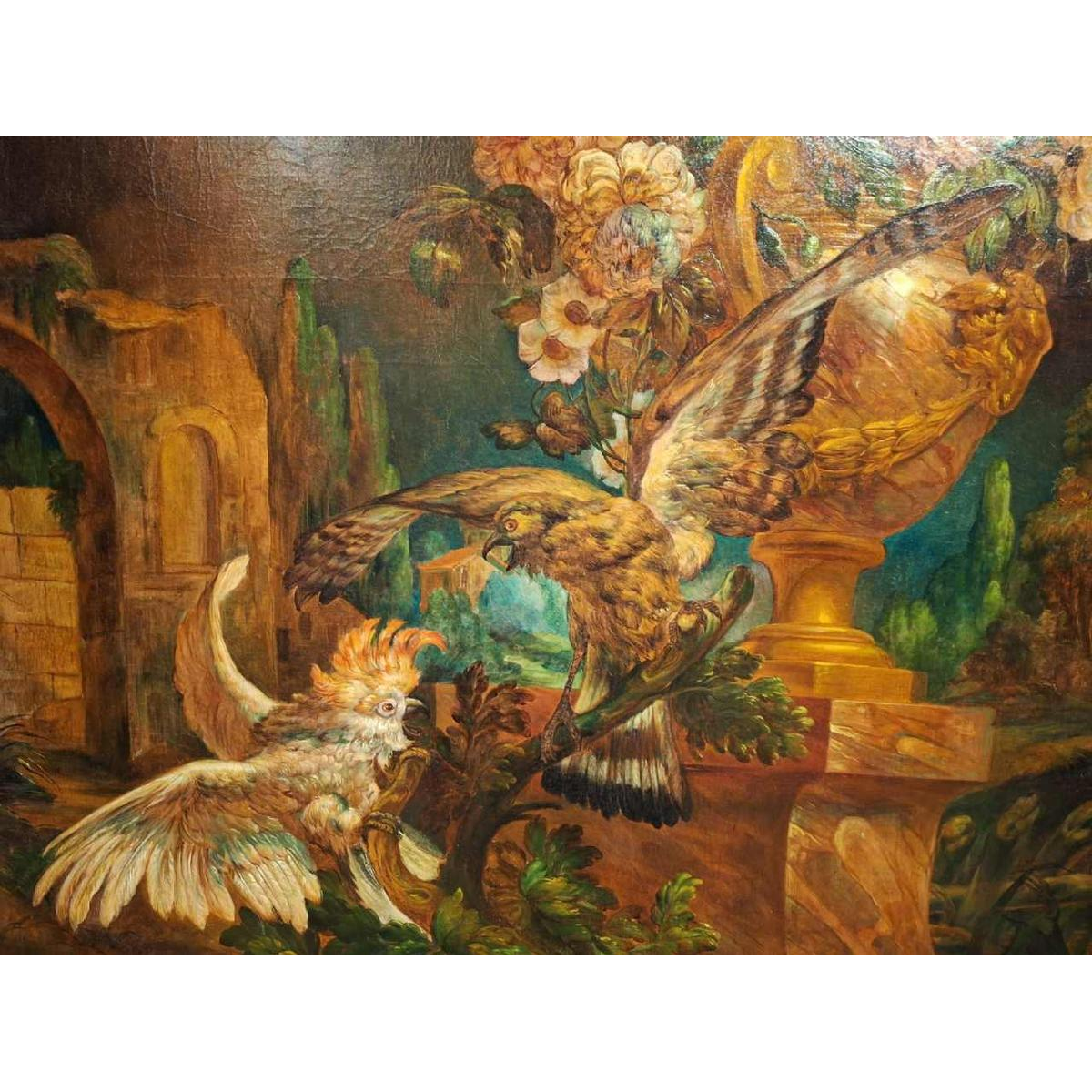 This form is only used to notify us of illegal content on product: Schilderij "Decoratief landschap met valk en kaketoe", olieverf op doek, 19e eeuw.