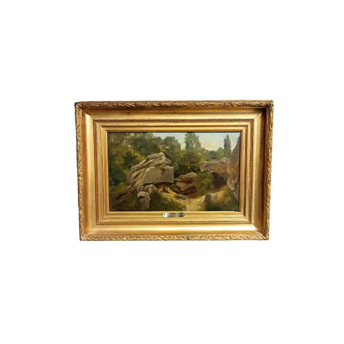 This form is only used to notify us of illegal content on product: Charles Deshayes 'In het woud van Nemours' landschapschilderij, olieverf op doek, 1880.