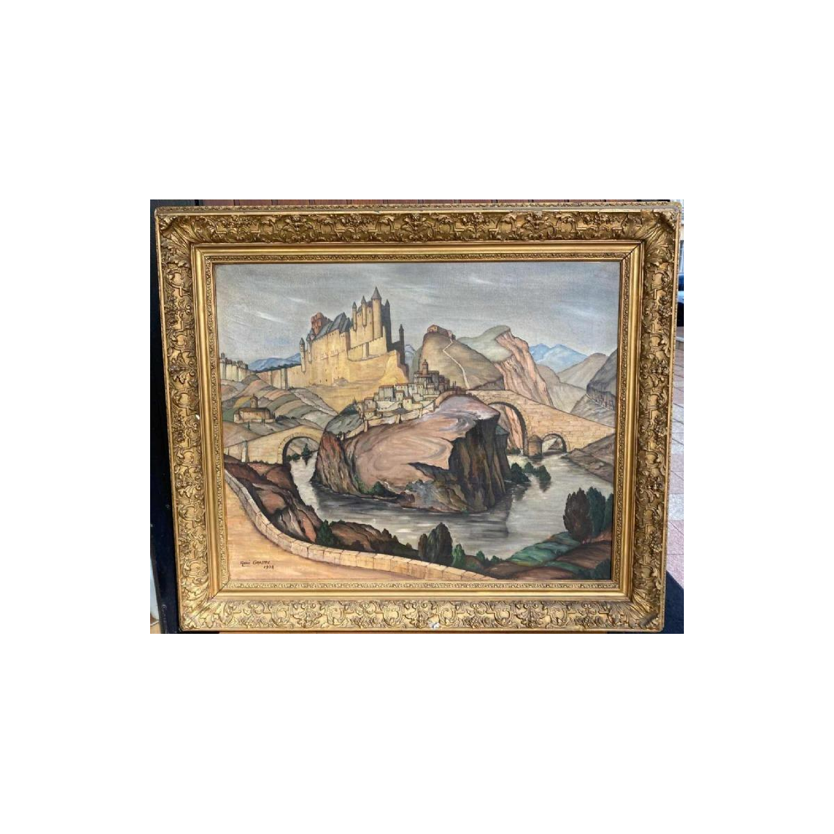 Olieverfschilderij op doek gesigneerd René Grappe 1938 Semur en Auxois