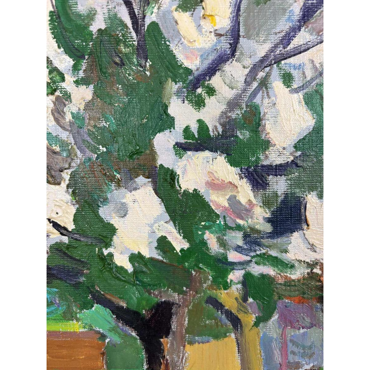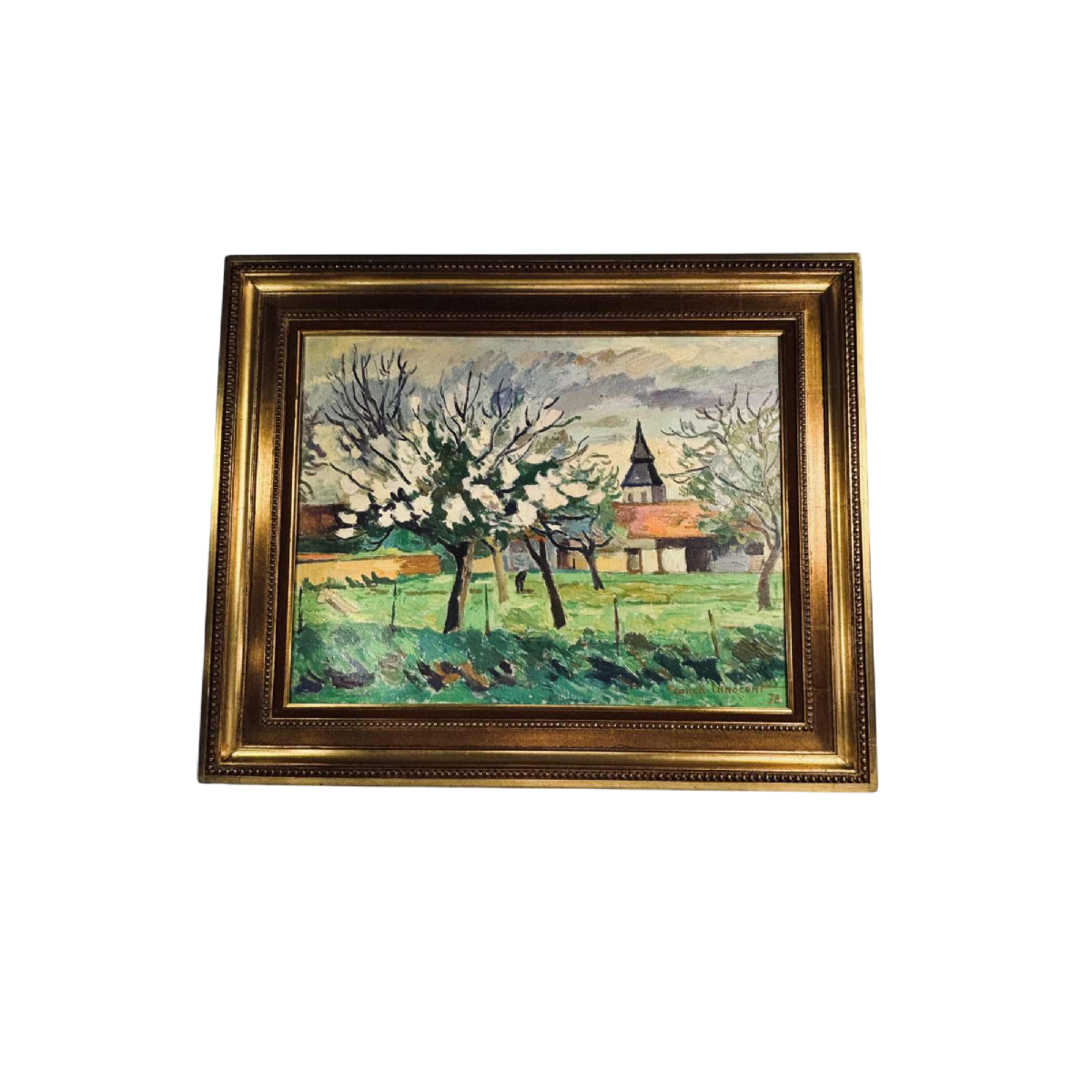 20e eeuws olieverf op doek door Franck Innocent (1912-1983), Printemps à Heudebouville, 1978.