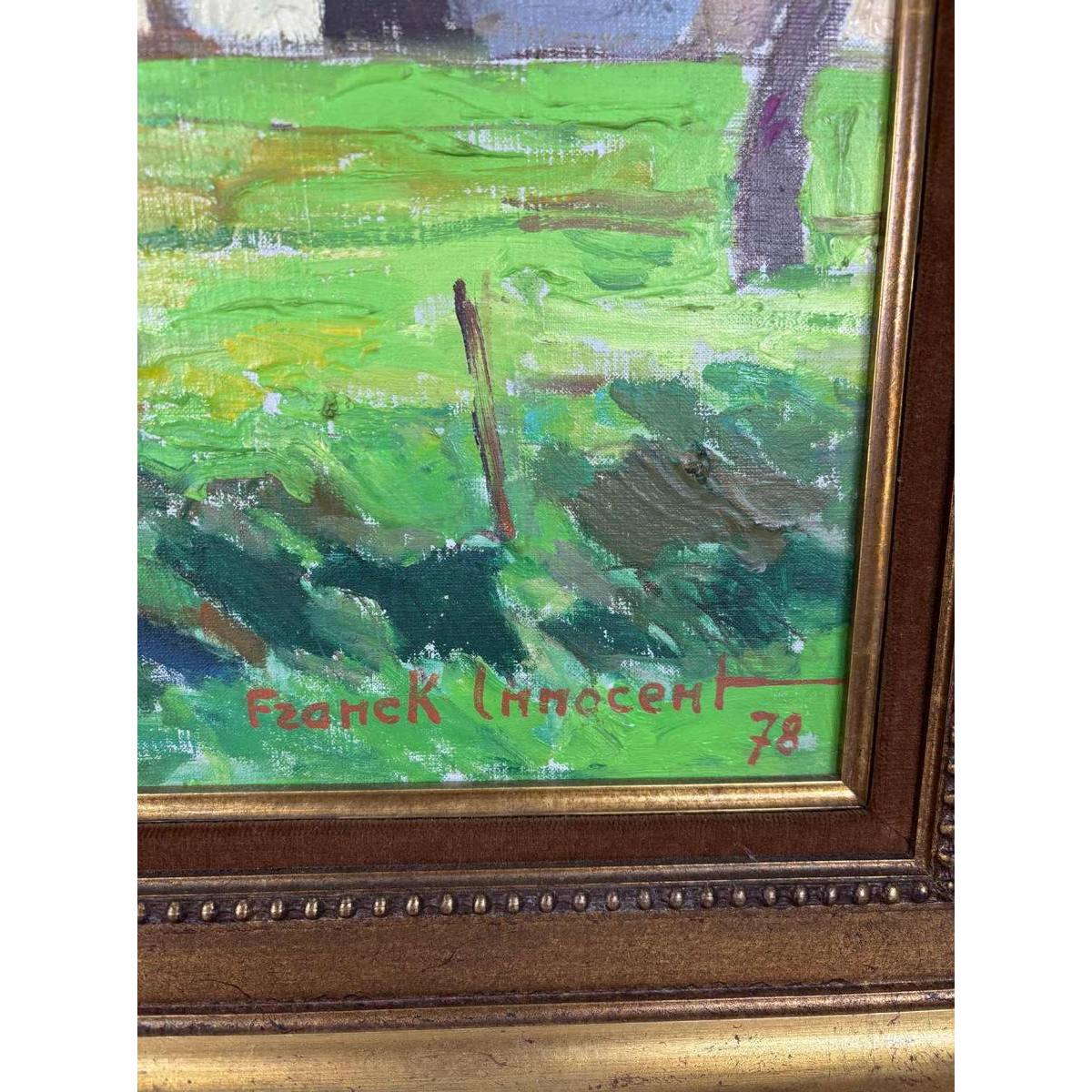Met zijn gedurfde penseelvoering en heldere kleuren weerspiegelt dit originele olieverfschilderij Innocent's diepe verbondenheid met het Franse platteland.
