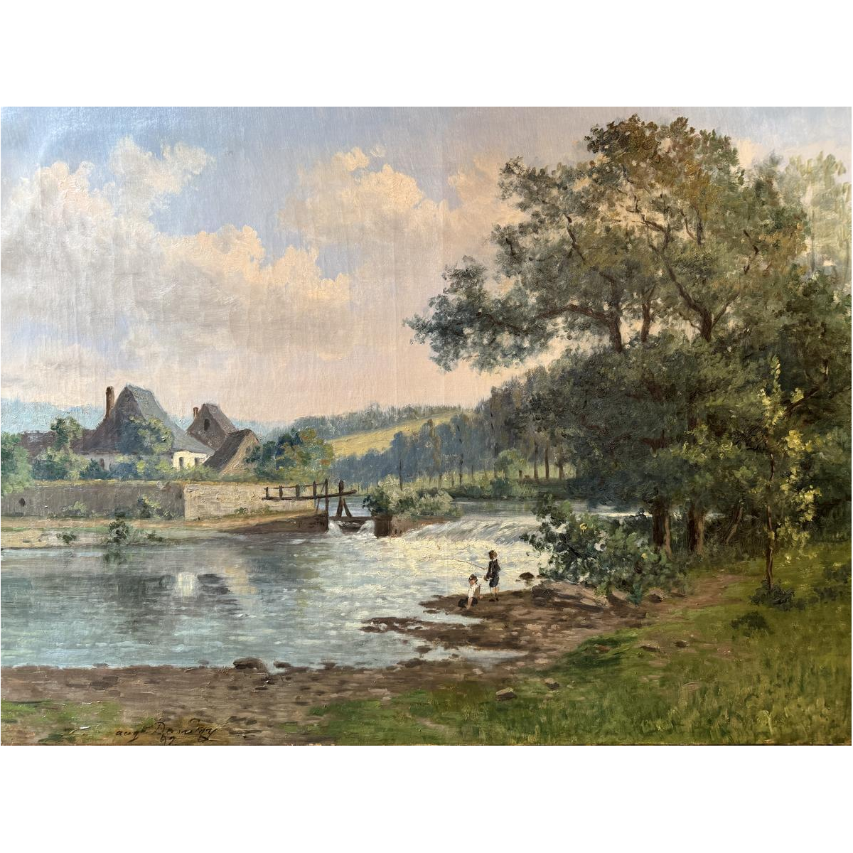 Auguste Dandoy “Jonge vissers aan de oevers van de Lesse?” 1892, olieverf op doek, 60 x 80 cm