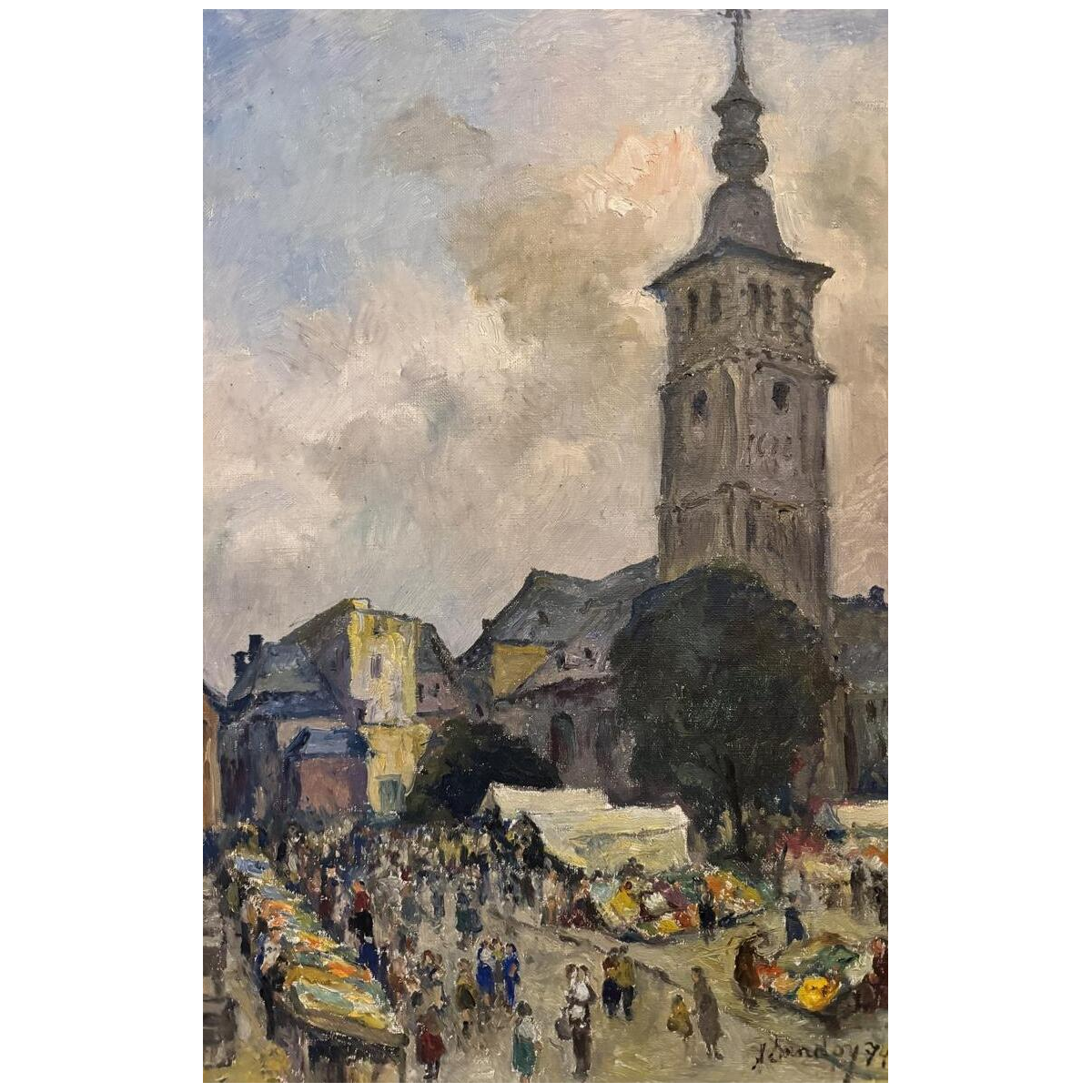 Albert Dandoy “Namur - De groentemarkt” 1974, olieverf op doek