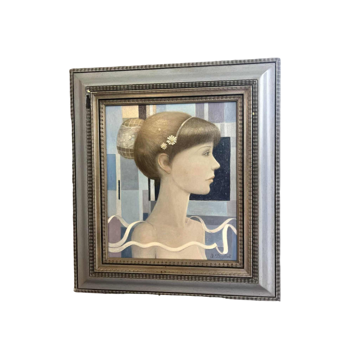 DINGELSTADT Jean-Claude “Portrait de jeune fille” schilderij olieverf op doek, 20e eeuw