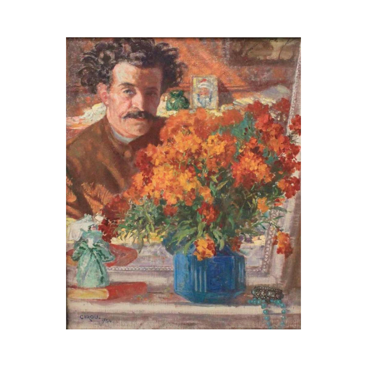 Paul Cirou , olieverf op doek " Auto Portrait "