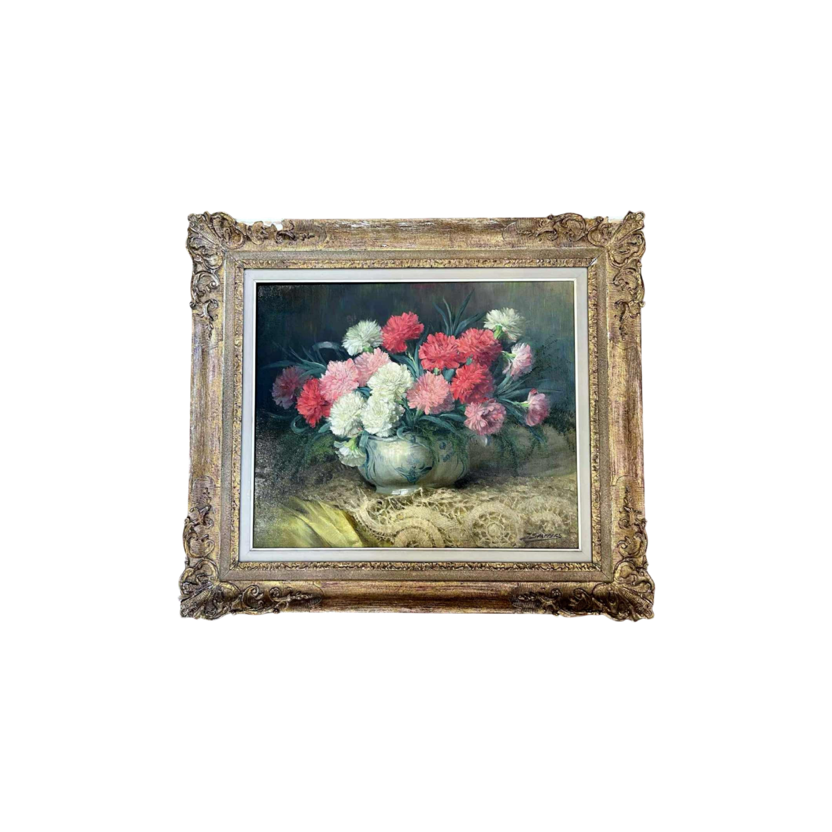 Julien STAPPERS,“Boeket anjers“, schilderij olieverf op doek, 20e eeuw