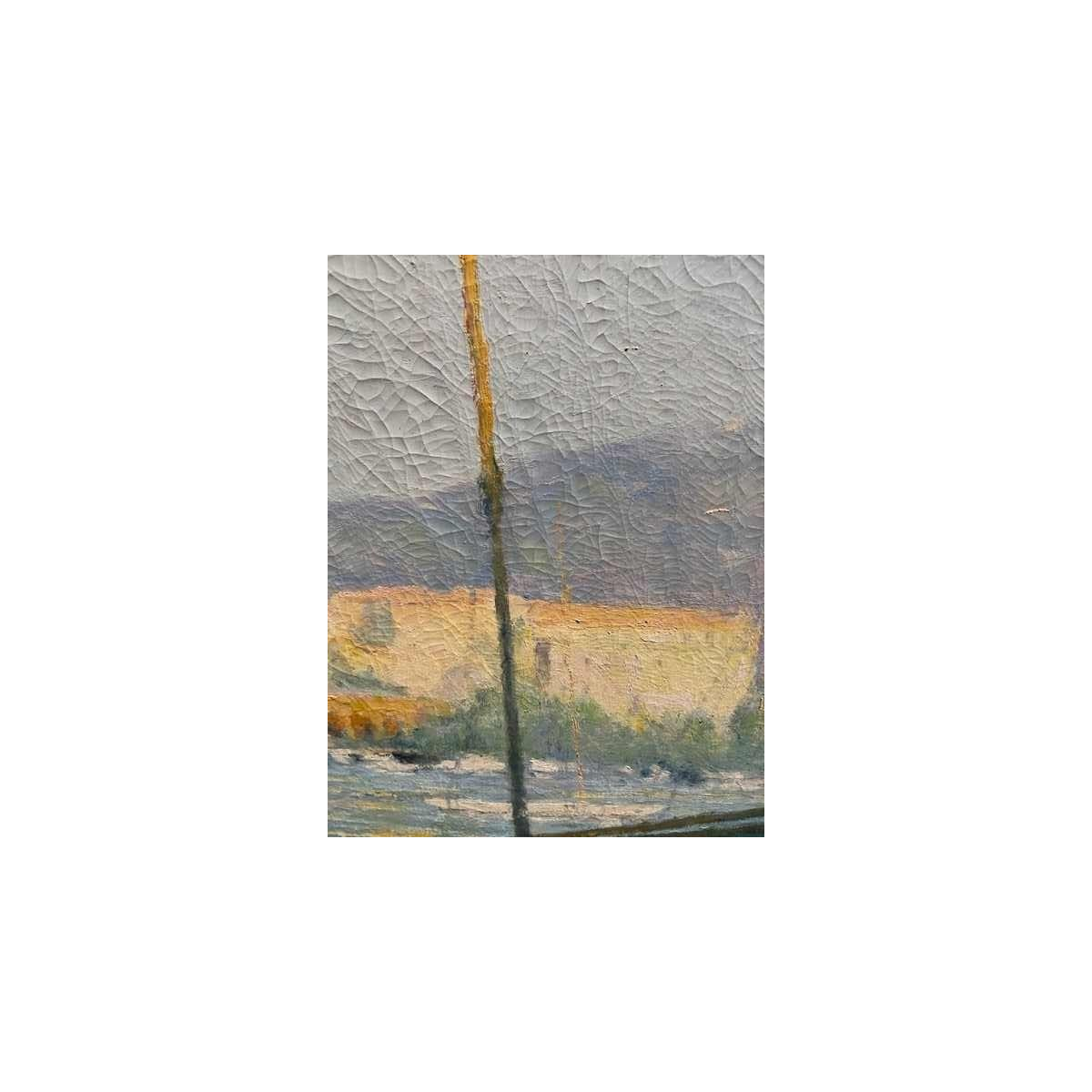 Raymond Thibesart ' Uitzicht op de Haven ', olie op doek, circa 1930/40